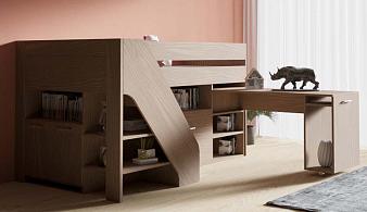 Кровать-чердак со столом и полками Рея-10 BMS