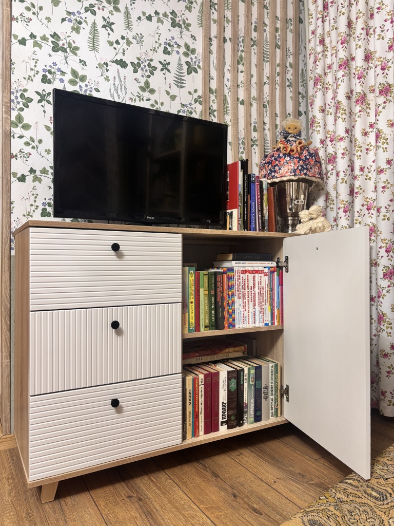 Номер заказа 1129867.Больше года искала себе комод с адекватным соотношением цена/качество. И, наверное, ещё бы долго искала, если бы подруга не посоветовала мне BestMebelShop, в котором они покупали большое количество мебели в новую квартиру.Что я могу сказать? Мои ожидания оправдались на все 100, очень довольна качеством комода, но больше всего понравилась возможность сделать заказ под индивидуальные размеры, а также самой выбрать цвет корпуса и фасадов.От сборки отказалась, сами собирали, это оказалось совсем даже не сложно, вдвоем справились! В комплекте к комоду были ножки, но их не стали устанавливать, потому что кот будет все свои игрушки под него таскать, а нам потом ползать и доставать. Комод очень аккуратный, красивый, потрясающе вписался в цветовое решение комнаты. Единственное, что запах не ушел пока, который чувствуется при открытии ящиков, но это у любой новой мебели такое.