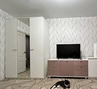 Комод очень понравился. Искали максимально длинный комод, во всю стену и чтобы подошел к интерьеру. Заменили одну полку в центральном отделении на три (добавили две дополнительные). Удобно, что у модели есть ножки и можно выбрать их высоту, чтобы прошел робот-пылесос. Сделан качественно, хорошие материалы, фрезировка фасадов выглядит отлично. Заказ 00000183333