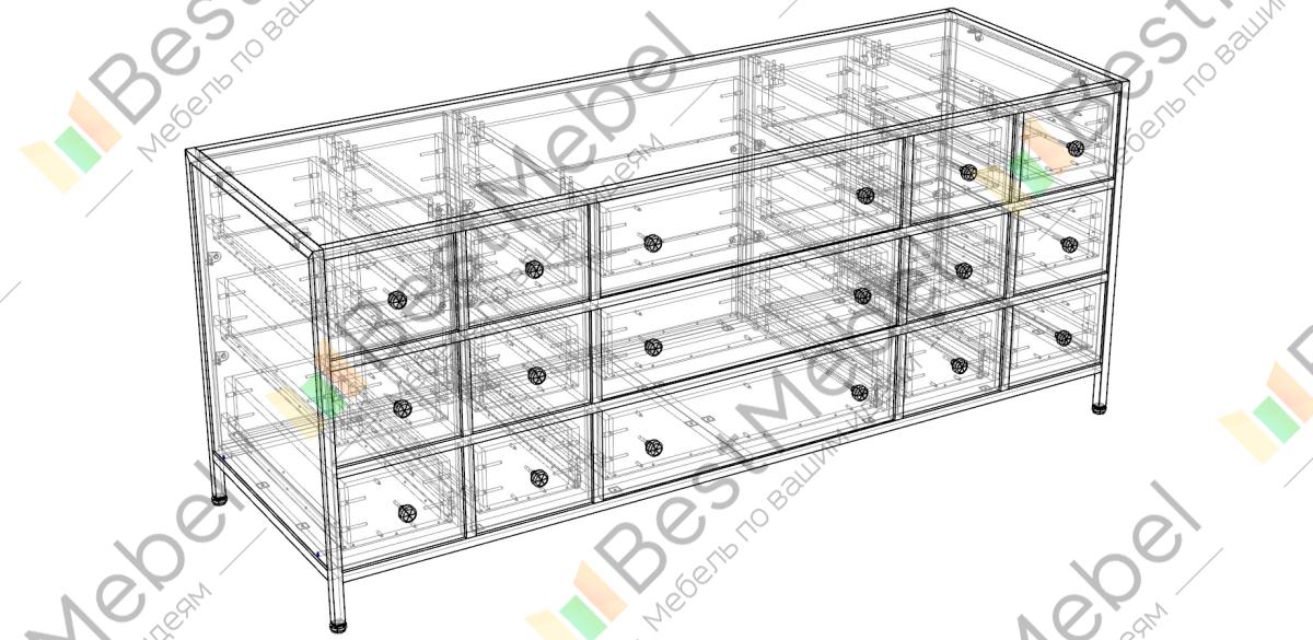 Комод Лакрес 4 BMS, оборудованный тремя большими и двенадцатью малыми выдвижными ящиками, оптимизирует хранение и позволит не тратить много времени на поиски нужной вещи. Широкая модель с просторной столешницей выполнена из качественной ламинированной плиты нейтрального оттенка. Каркас из металлического профиля с высокими опорами придает конструкции особенную прочность и визуальную легкость. Купить комод Лакрес 4 BMS для интерьера в индустриальном стиле вы сможете в нашем интернет-магазине.
