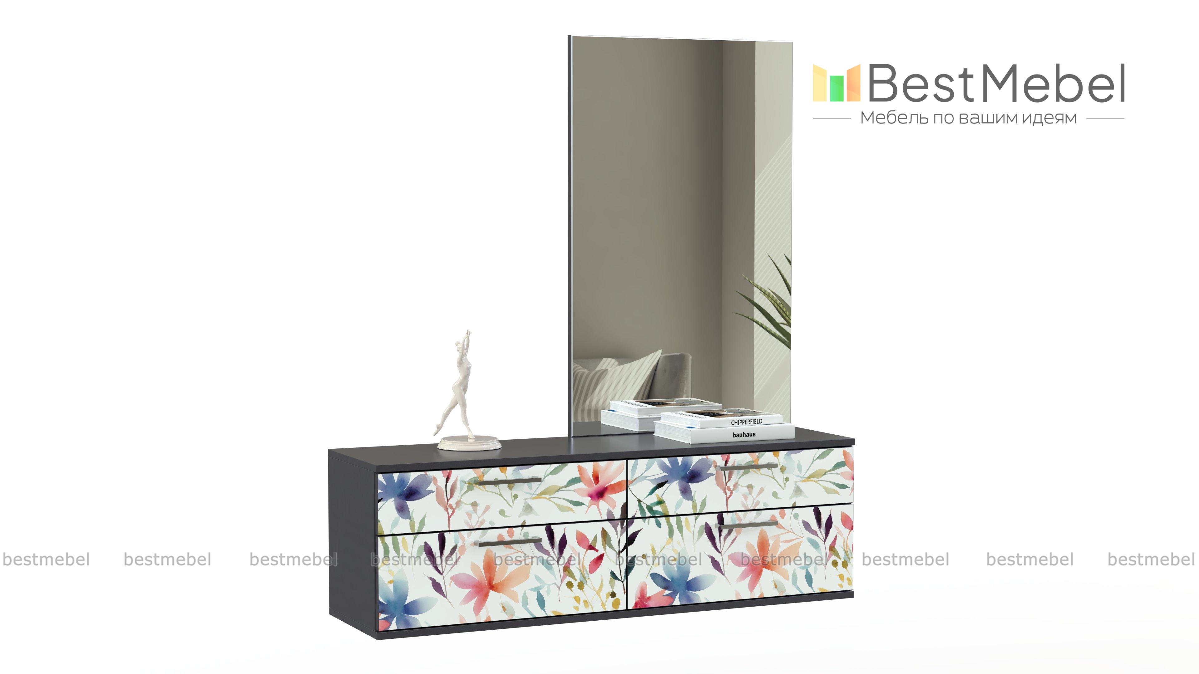 Комод Лэрри 10 BMS поможет вам рационально использовать пространство гостиной, спальни или прихожей. Подвесной комод с нежной цветочной акварелью на фасаде оборудован четырьмя выдвижными ящиками разных размеров и дополнен большим зеркалом. Композиция позволит вам обустроить макияжную зону и разместить в удобном доступе уходовые средства, украшения, аксессуары и стильный декор. Купить комод Лэрри 10 BMS вы сможете в нашем интернет-магазине, подобрав цветовую гамму и другие параметры.
