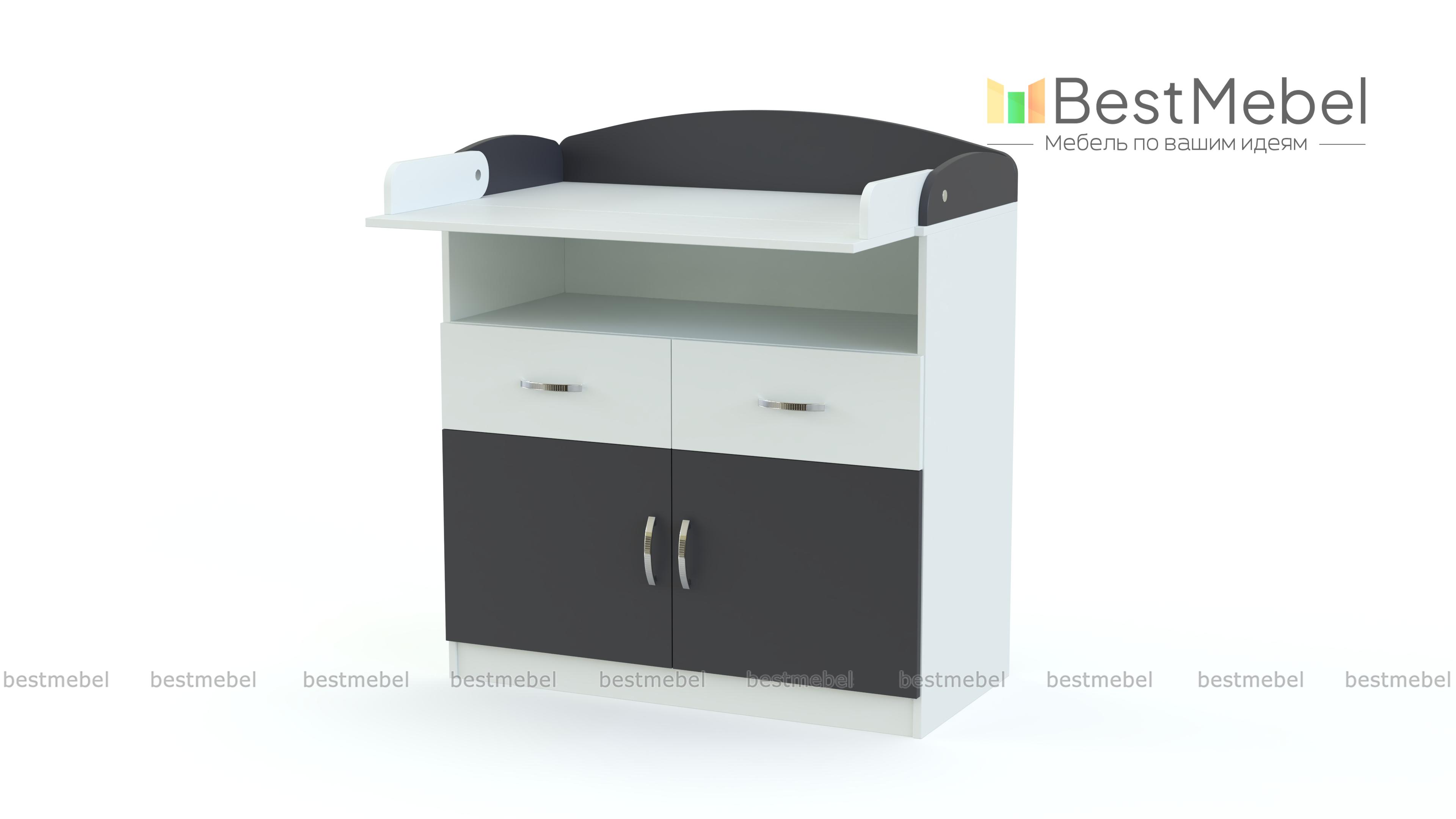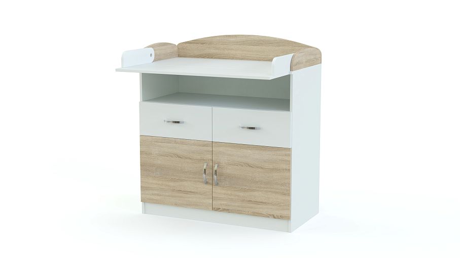 Комод пеленальный Натан 7 BMS выполнен из качественной ламинированной плиты, лаконичен и функционален. Комфортная для малыша пеленальная поверхность закрыта полукруглыми бортиками и легко увеличивается с помощью откидного столика. Для хранения детских вещей и средств гигиены предусмотрены просторная ниша, два выдвижных ящика и двухдверное распашное отделение. Купить комод пеленальный Натан 7 BMS вы сможете в нашем интернет-магазине, подобрав фурнитуру и цвет по каталогу.