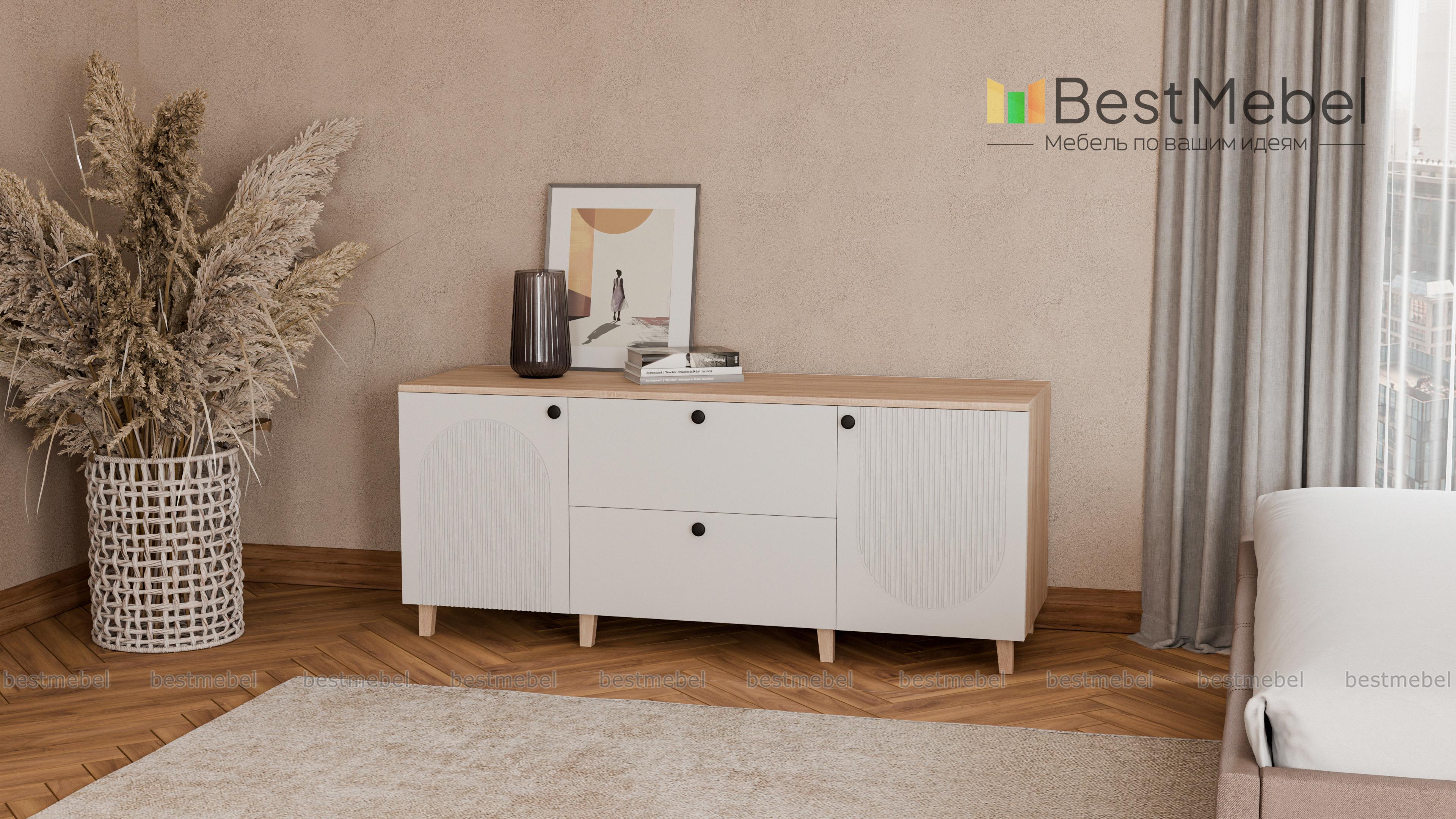 Комод Рене 5 BMS может использоваться для организации зоны ТВ, размещения интерьерных украшений и хранения. Модель современного дизайна с высокими ножками привлекает внимание стильной рельефной отделкой. Два глубоких ящика в центре и два распашных отделения по бокам помогут вам упорядочить хранение домашнего текстиля и всевозможных мелочей. Купить комод Рене 5 BMS в актуальных оттенках и любом удобном размере вы сможете на сайте нашего интернет-магазина.