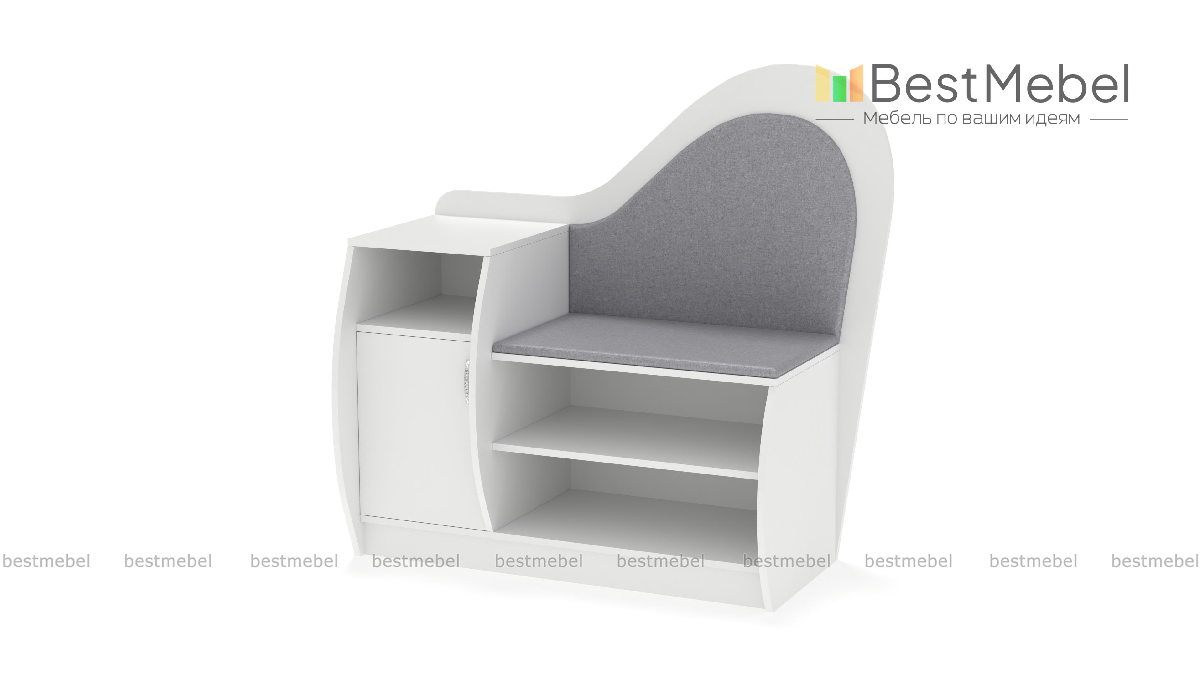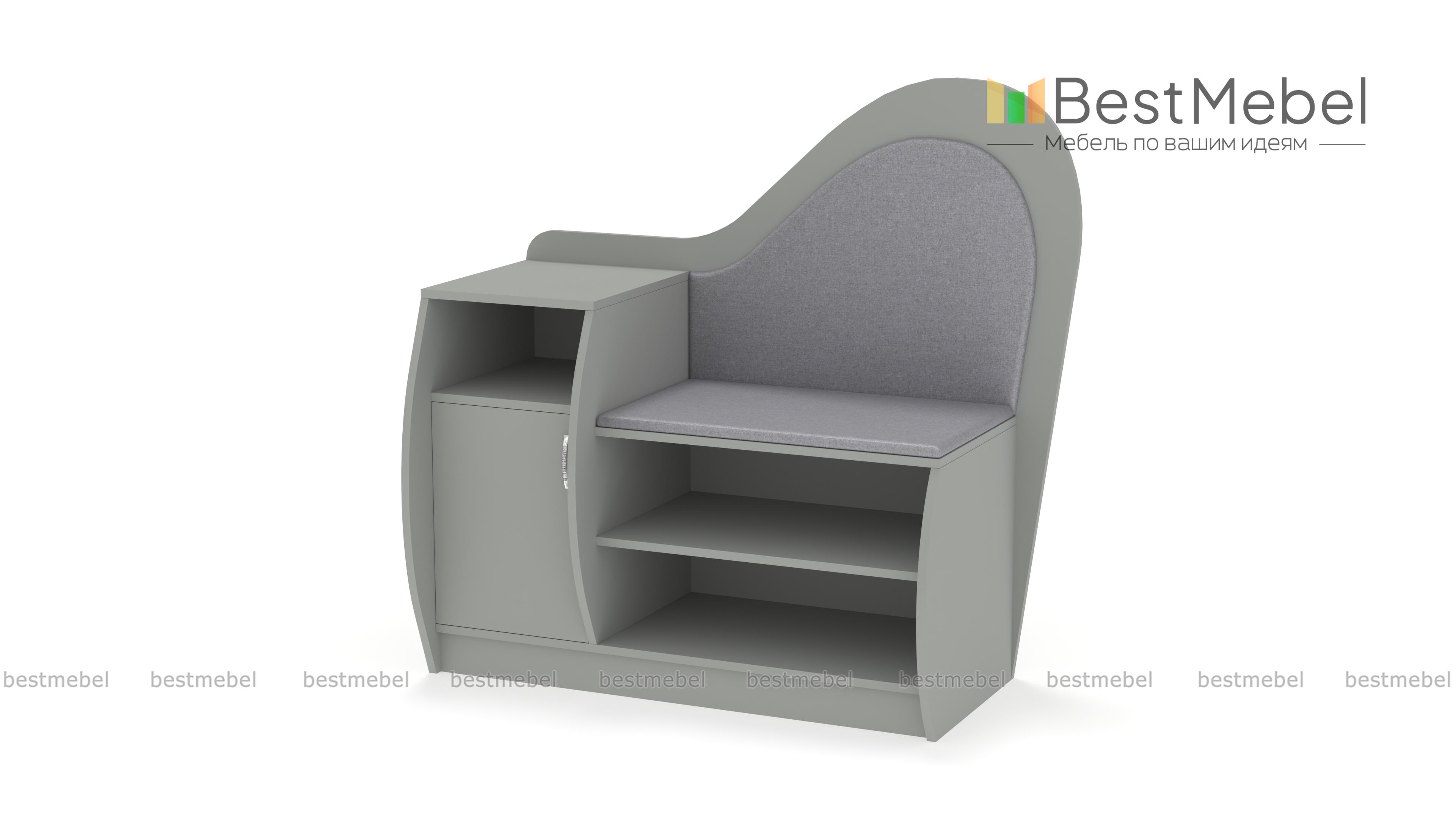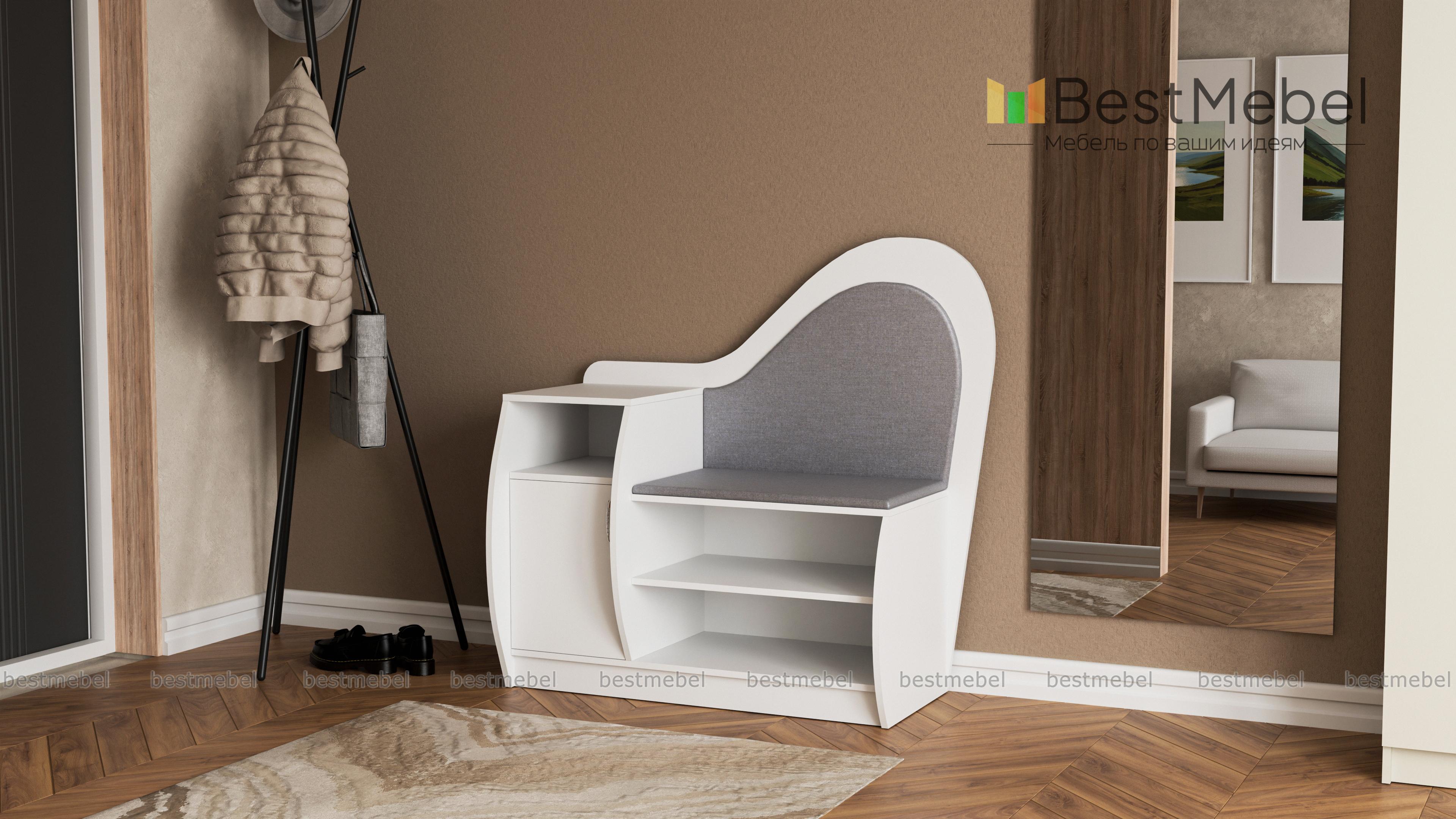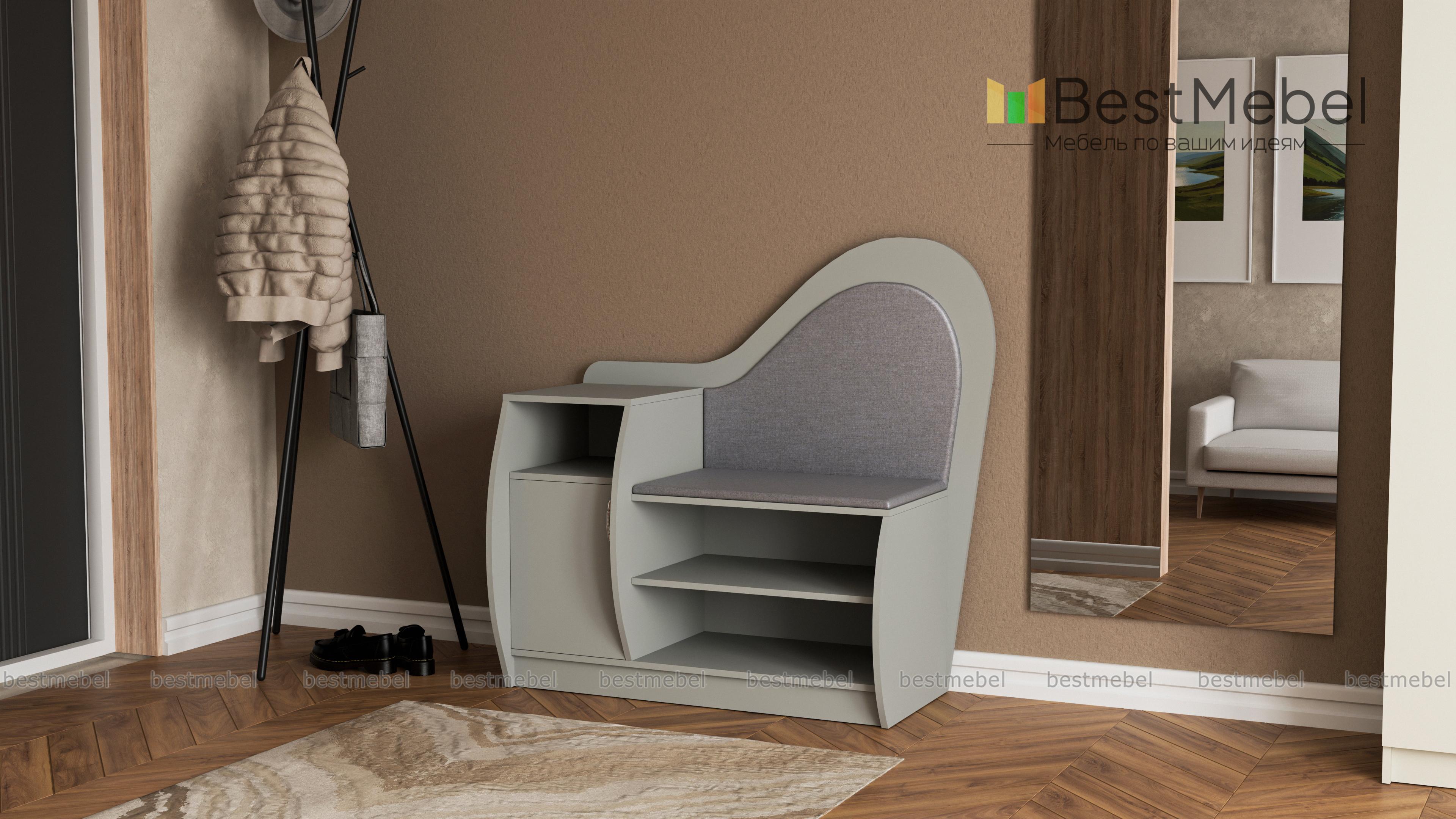 Обувница Литта 1 BMS сочетает практичность конструкции и оригинальный дизайн. Благодаря фигурно вырезанным элементам и скругленным боковинам модель займет одно из центральных мест в интерьере прихожей. Комбинированная обувница оборудована открытыми полками, тумбой с распашным отделением и нишей для аксессуаров и сиденьем с высокой спинкой в мягкой тканевой обивке. Купить обувницу Литта 1 BMS и эффективно использовать пространство вам поможет наш интернет-магазин.