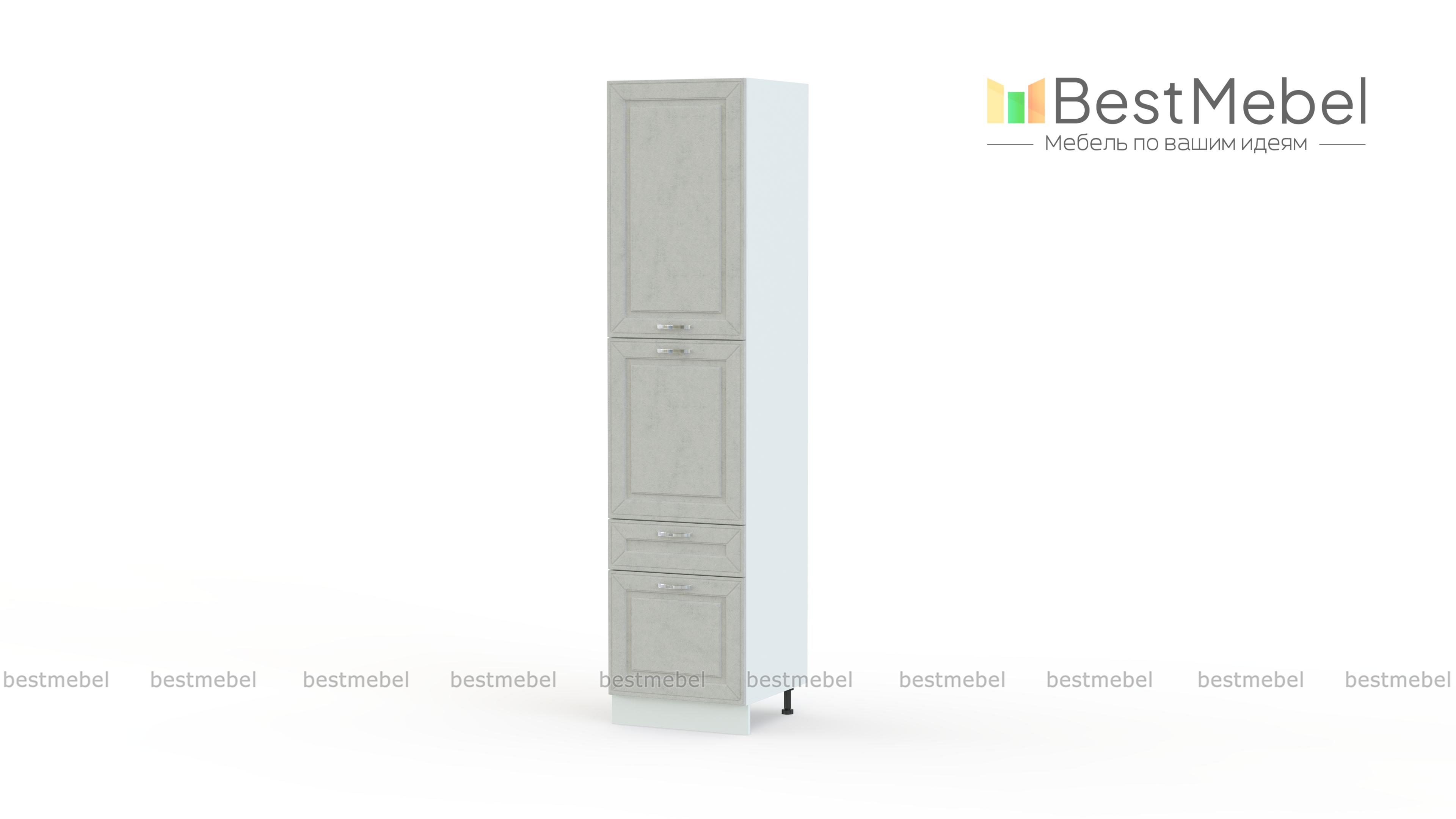 Пенал Маргарита 2Д 2Я BMS поможет организовать удобное хранение габаритной кухонной утвари, продуктов и разнообразных мелочей. Продуманная конструкция предусматривает два распашных отделения с полками и два выдвижных ящика в основании, для устойчивости пенал оборудован регулируемыми пластиковыми опорами. Уютный и комфортный интерьер в стиле прованс гармонично дополнят фрезерованные фасады с изящной фурнитурой. Купить пенал Маргарита 2Д 2Я BMS по доступной цене приглашаем в наш интернет-магазин.