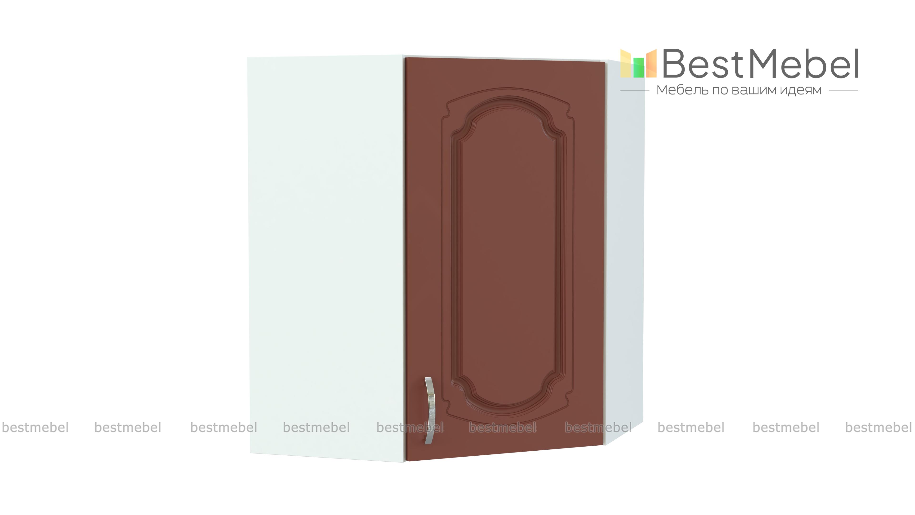 Шкаф верхний угловой Настя BMS займет центральное место в композиции из навесных модулей кухонного комплекта. Шкаф выполнен в характерных для классического стиля теплых тонах и украшен по фасаду элегантной фрезеровкой. Внутреннее отделение с полкой отличается особенной вместительностью и подходит для хранения сыпучих продуктов, специй, посуды и многого другого. Купить шкаф верхний угловой Настя BMS простой и надежной распашной конструкции вы сможете недорого в нашем интернет-магазине.