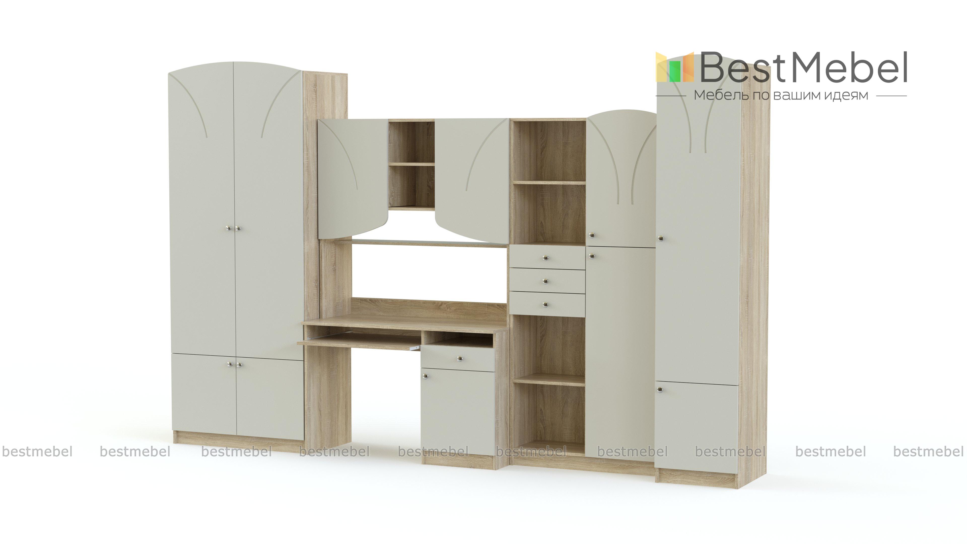 Детская комната Румба BMS – это гармоничное сочетание классического декора и современной функциональности, особенно актуальной для подростковых комнат. Для комфортной учебы и удобного размещения гардероба, книг, техники и мелочей комплект оборудован компьютерным столом с тумбой и надстройкой, распашным шкафом, комбинированным стеллажом и пеналом. Все предметы выполнены в теплых древесных оттенках и украшены фрезеровкой. Купить детскую комнату Румба BMS приглашаем в наш интернет-магазин.