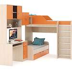 Детская кровать - чердак Дуэт 10 BMS –функциональный современный предмет мебели для создания комфортных условий для учебы и отдыха, особенно при дефиците свободных квадратных метров. Большинство детей мечтает спать на 2-м этаже, кровать - чердак предоставляет такую возможность. Забираться наверх ребенок будет по удобной лесенке. Главное преимущество таких моделей в том, что под спальным местом располагаются все необходимые элементы: большой шкаф для одежды, кровать второго ребенка или письменный стол. При необходимости изделие можно доукомплектовать стеллажом, еще одной кроватью или компьютерным столом в тех же цветовой гамме и стиле. Купить детскую кровать – чердак Дуэт 10 BMS по низкой стоимости можно в нашем онлайн – магазине в удобное для Вас время.