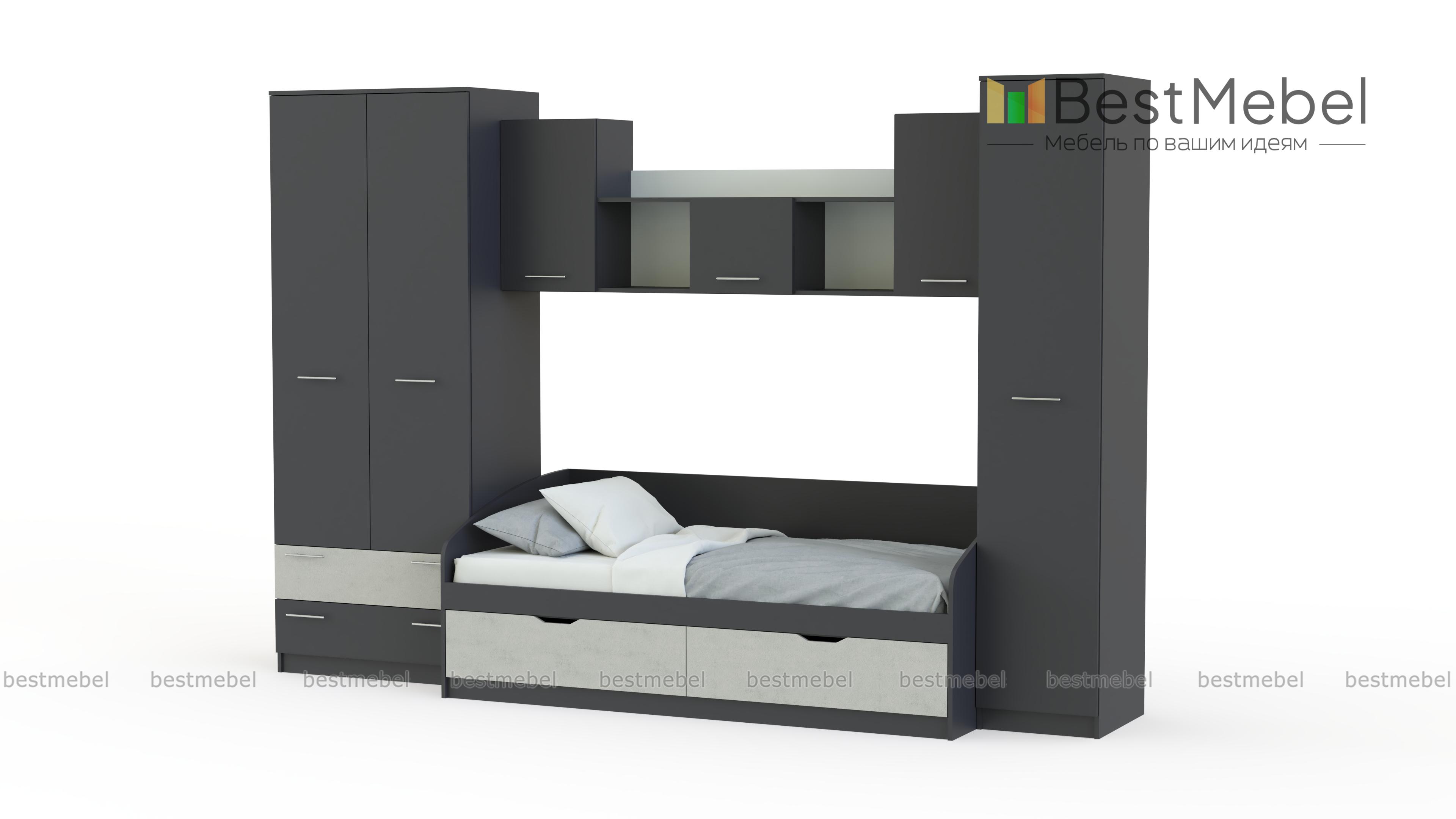 Детская мебель Рико BMS отличается лаконичным дизайном, функциональностью и станет выгодным приобретением для комнаты современного подростка. Практичная модульная конструкция не занимает много места и оборудована всем необходимым для полноценного отдыха и комфортной учебы. В комплекте кровать с выдвижными бельевыми ящиками, письменный стол, навесная секция, пенал для одежды и комбинированный пенал с книжными полками и распашным отделением. Купить детскую мебель Рико BMS недорого вы сможете в нашем интернет-магазине.