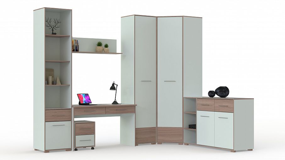 Модульная детская Кубу-2 BMS поможет создать комфортное рабочее место и решить проблему хранения разнообразных вещей. Геометричная композиция в модном сочетании белого и древесных тонов состоит из письменного стола с ящиками и выкатной тумбой, навесной полки, книжного стеллажа, углового шкафа для одежды и постельных принадлежностей и комбинированного комода с полками. Экологичные и износостойкие материалы станут гарантией долговечности и простоты ухода. Купить модульную детскую Кубу-2 BMS приглашаем в наш интернет-магазин по отличной цене.
