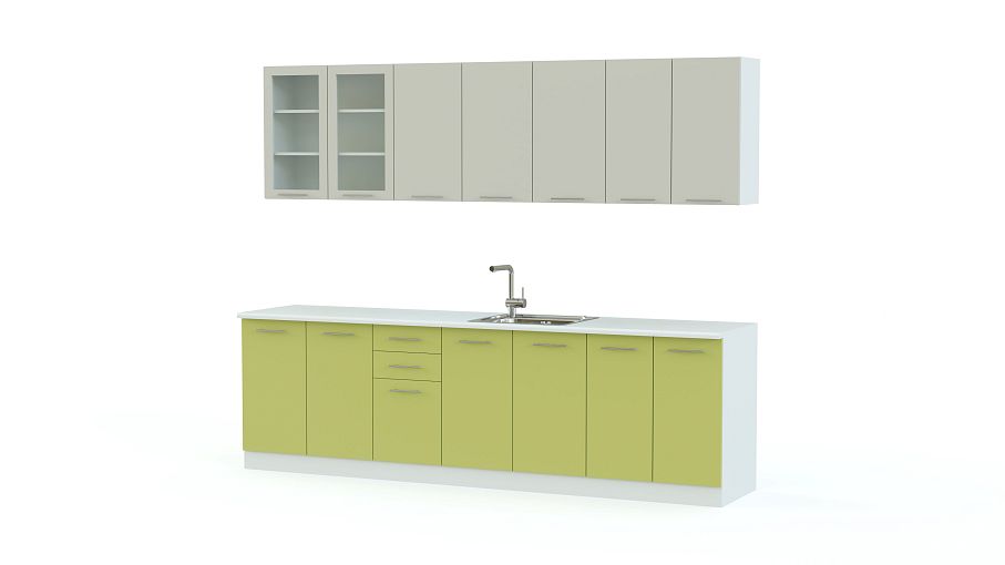 В современный минималистичный интерьер отлично впишется эффектная и лаконичная кухня Даниила BMS. Модель оборудована четырьмя нижними и четырьмя навесными модулями, сплошные фасады которых выполнены в модном контрастном оттенке и декорированы ручками-рейлингами. Высокую функциональность обеспечивают кухне разноплановые отделения, в которых будут под рукой посуда, столовые приборы и прочие мелочи. Оптимальный вариант расцветки вы сможете подобрать сами в нашем интернет-магазине.