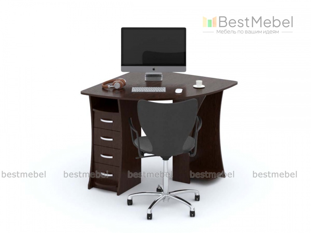 Компьютерный стол Ницца-2 BMS – это универсальная модель для дома или офиса, привлекающая внимание оригинальным дизайном. Угловой радиусный столик позволит задействовать обычно неиспользуемое угловое пространство и сэкономит полезную площадь. Под столешницей треугольной формы со скругленным передним краем располагаются выдвижная полочка для клавиатуры, ниши, отделение под системный блок и выдвижные ящики. Купить компьютерный стол Ницца-2 BMS вы сможете в нашем интернет-магазине, подобрав цветовое решение.