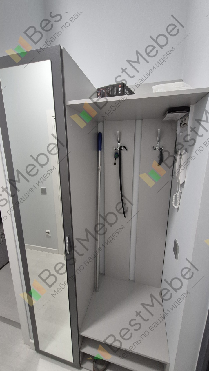Заказ 00000949857, изделие Прихожая ПВ-3 BMS (1000х2100х550). Долго искал шкаф из-за нестандартных параметров прихожей (нужна открытая часть для электрического щитка и большая глубина). Думал изготавливать на заказ, но нашел этот вариант, который оказался в два раза дешевле. Изменил на сайте глубину на необходимую, выбрал нужный цвет и меньше, чем через 2 недели привезли. Все подошло как хотел.