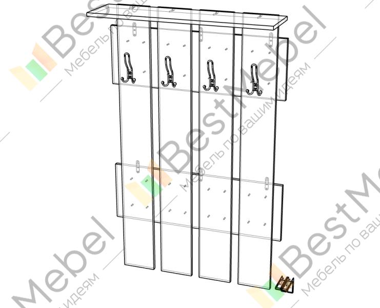 Вешалка Пресли 15 BMS придаст эстетичный вид входной зоне, разместив в порядке сезонные вещи. Открытая настенная конструкция выполнена в двух контрастных оттенках из ламинированной плиты высокого качества. Четыре надежных крючка под верхнюю одежду, сумки и шарфы располагаются на отдельных вертикальных панелях, объединенных верхней полкой. Купить вешалку Пресли 15 BMS с выбором подходящей цветовой гаммы вы сможете недорого в нашем интернет-магазине.