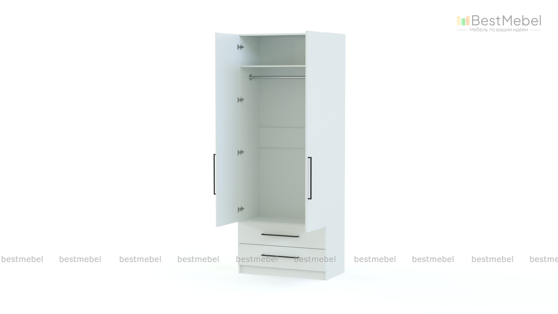 Шкаф распашной Ава 6 BMS оборудован двумя просторными выдвижными ящиками в нижней части и двухдверным платяным отделением. Модель оптимально подходит для хранения базового гардероба, а при необходимости легко дополняется другими шкафами серии. Стильная деталь в лаконичном современном дизайне - удлиненные ручки-скобы черного цвета. Купить шкаф распашной Ава 6 BMS с изготовлением по вашим размерам приглашаем на сайт нашего интернет-магазина.