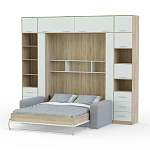 Шкаф-кровать с диваном Изабель-6 BMS привлекает ярким и функциональным современным дизайном. Практичная модель в сочетании древесного и белого гармонично дополнит интерьер небольшой городской квартиры. Высокий шкаф с антресолью удобен для хранения разнообразных бытовых вещей, а с комфортом отдохнуть поможет уютный диванчик без подлокотников. В центре располагается откидная кровать с вертикальным подъемом, которая легко раскладывается при помощи надежного механизма. Купить шкаф-кровать с диваном Изабель-6 BMS приглашаем выгодно в наш интернет-магазин.