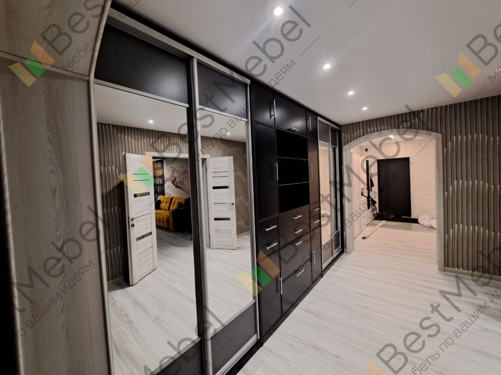 Этот вариант делали под нас, только у нас по одной зеркальной дверки с каждой стороны.Очень вместительно получилось!