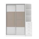 Шкаф-купе Дональд 1 BMS – это удобная система хранения, в которой сочетаются функциональность и актуальный дизайн. Двухдверный платяной шкаф-купе дополнен секцией с тумбой и открытыми полками, что позволит разместить не только одежду, но и множество бытовых мелочей, книги и интерьерные украшения. Выполненный в нейтральном белом цвете с серебристым профилем, шкаф декорирован вставками бежевого цвета. Купить шкаф-купе Дональд 1 BMS по доступной цене приглашаем в наш интернет-магазин.