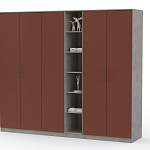 Этот шкаф подойдёт для большой семьи. Это целый комплекс шкафов (3 штуки). Первый шкаф – 3-х дверный, два отдела бельевые, 5 полок, один платяной, с штангой; второй – шкаф-этажерка на 5 открытых полочек; третий – двухдверный шкаф для верхней одежды, с штангой и полкой для головных уборов. Он идеально впишется в гостиную с интерьером в современном стиле. Заказать изделие Вы можете на нашем сайте по сниженной цене и с возможностью другого цветового оформления.