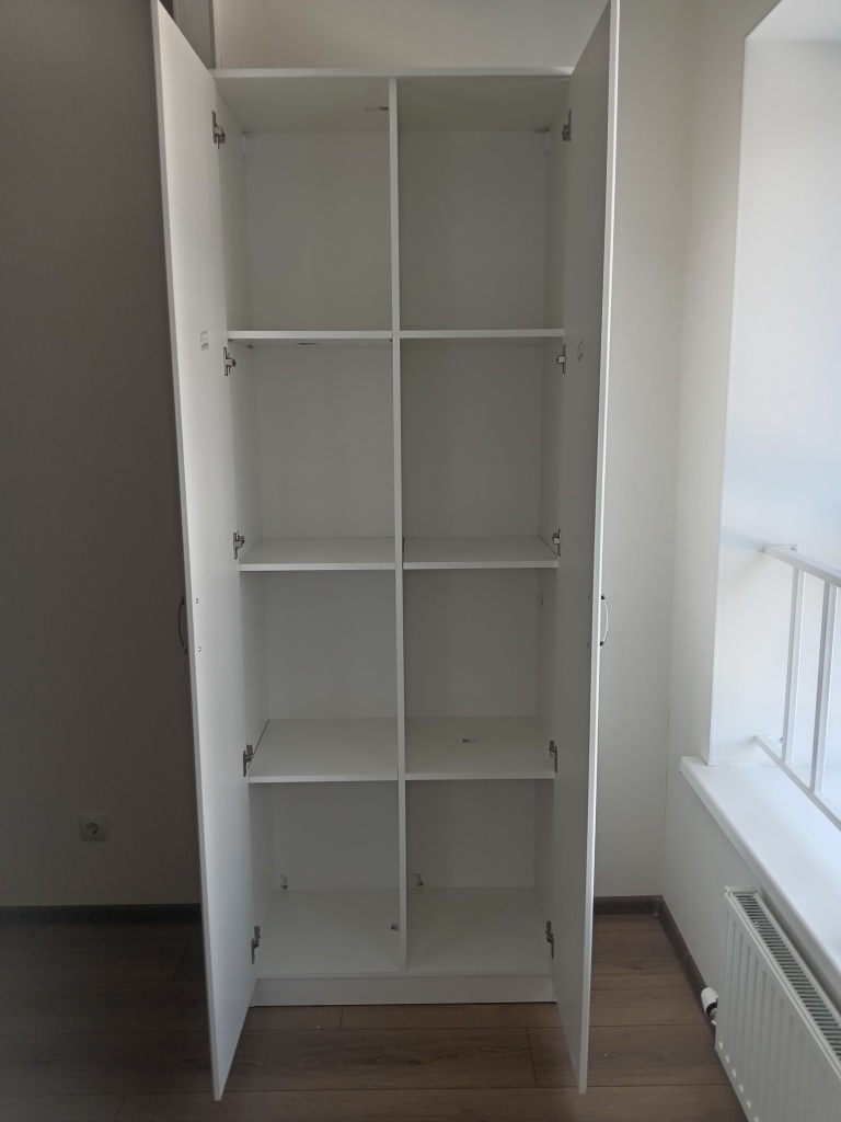 Шкафом довольна. Заказывала его на кухню, использовать под хозяйственные нужды, спрятать гладилку, пылесос, фартуки и прочие мелочи. Размеры были мои. Цвет панелей конечно я хотела другой, фисташковую патину, но его сняли с производства, но и этот цвет встроил меня вполне. Спасибо за вашу работу!!!