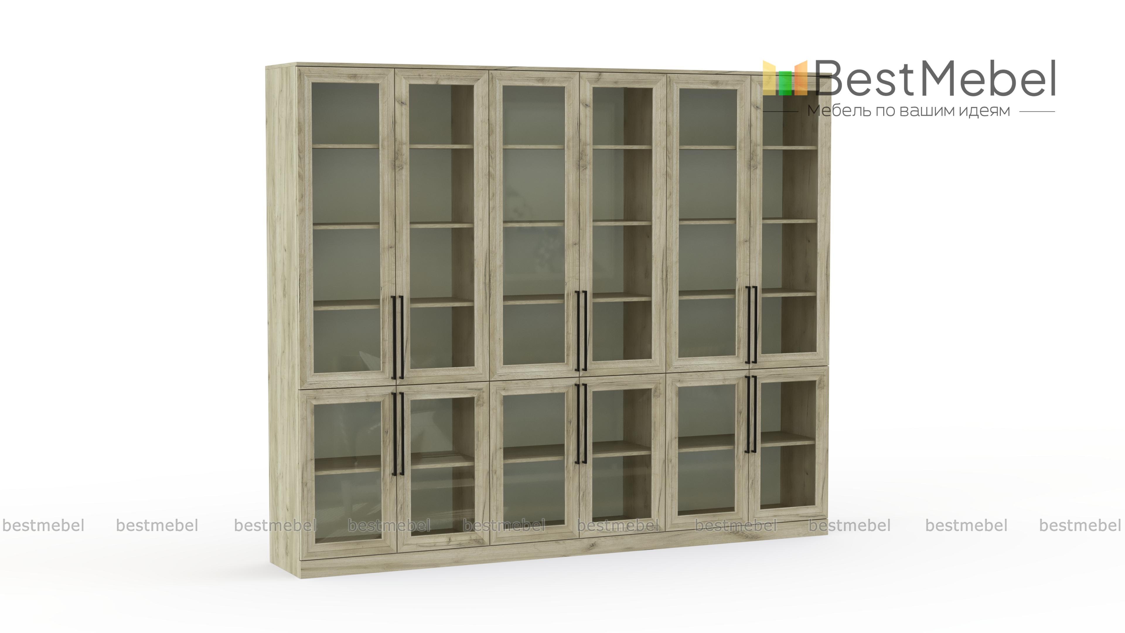Шкаф книжный Рим 5 BMS с застекленным фасадом будет востребован в домашнем интерьере, офисе или библиотеке. Внутри шести распашных отделений — больших и малых, расположены полки для книг и журналов, документов, предметов коллекции и других памятных вещей. На дверцы классического дизайна с фрезерованными рамками установлены удлиненные стильные ручки. Купить шкаф книжный Рим 5 BMS с выбором размеров, цвета и фурнитуры вы сможете в нашем интернет-магазине.