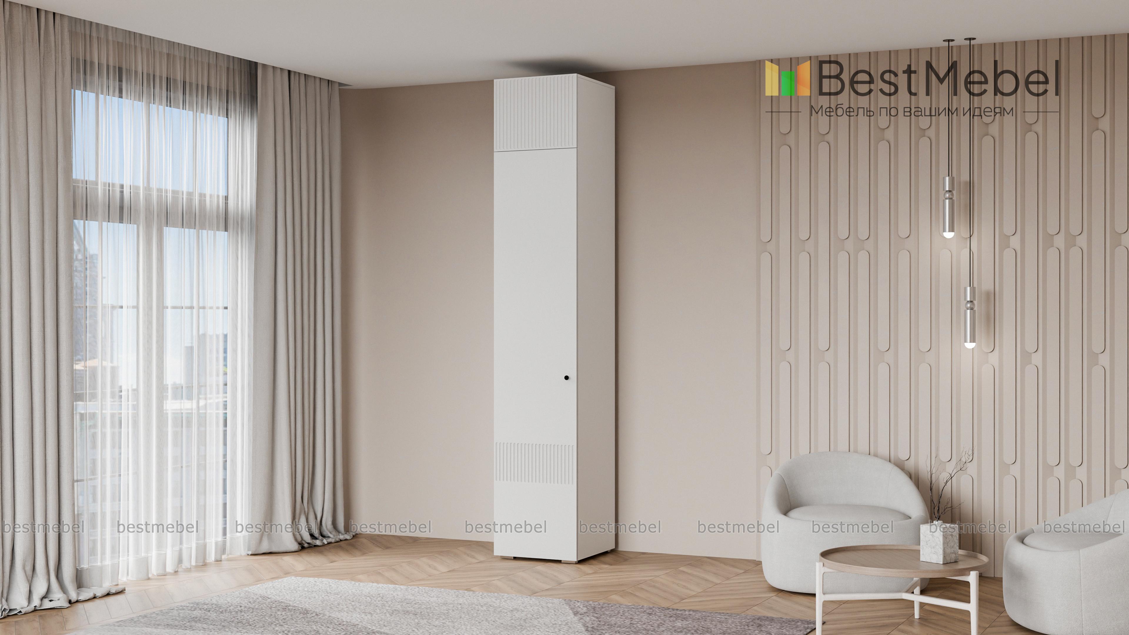 Шкаф распашной Джосс 7 BMS оснащен антресолью, чтобы максимально задействовать пространство. При компактных габаритах комплектация пенала включает в себя штангу, полку и верхнюю полку с дверцей. Актуальные оттенки и вертикальная фрезеровка на фасаде создают стильный и достаточно универсальный современный дизайн. Купить шкаф распашной Джосс 7 BMS, который будет иметь необходимые размеры и цветовую гамму, вы всегда сможете в нашем интернет-магазине.