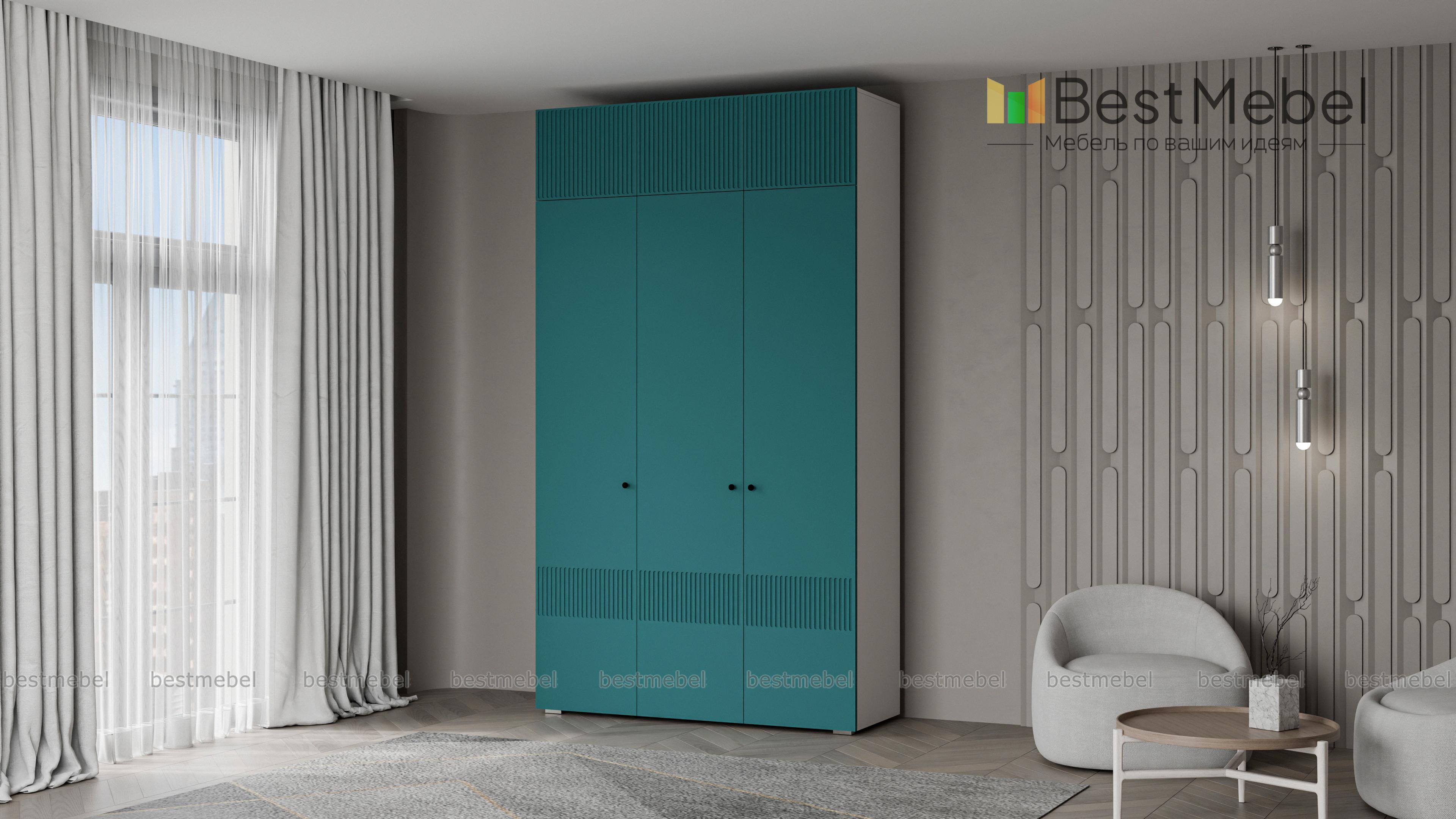Шкаф распашной Джосс 9 BMS с фрезерованным декором на фасаде аквамаринового оттенка подходит для разных интерьеров: прихожих, спален и детских. Трехдверный шкаф оборудован платяной штангой, полками и антресолью для эффективного использования пространства. Распашные дверцы с миниатюрными круглыми ручками обеспечивают легкий доступ к основным отделениям и верхним полкам. Купить шкаф распашной Джосс 9 BMS вы сможете в нашем интернет-магазине в любых размерах и оттенках из каталога.