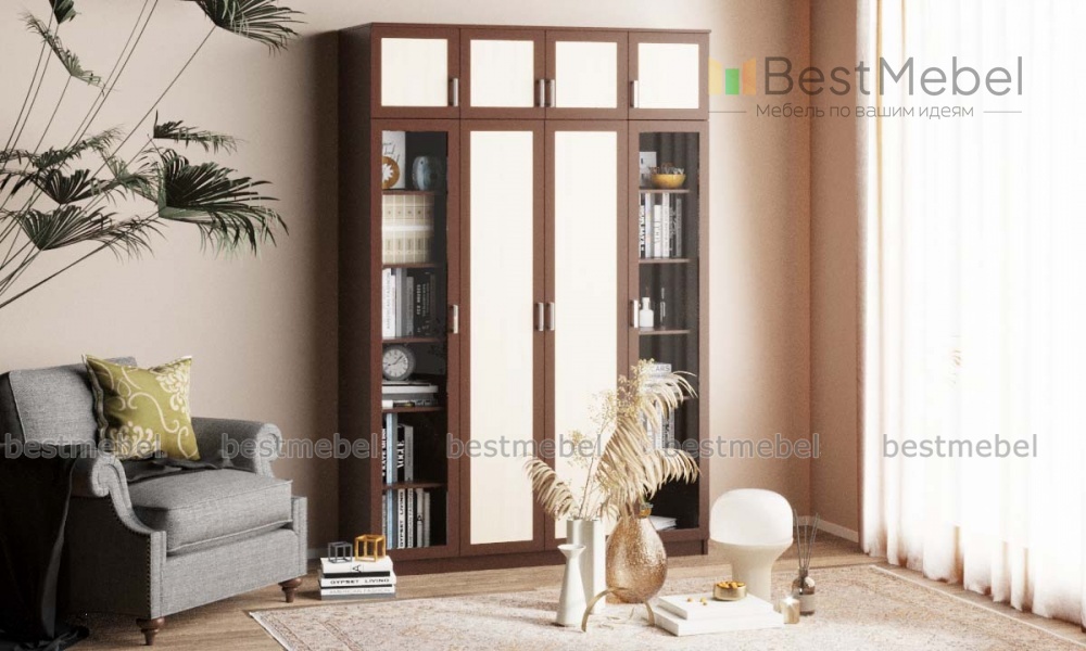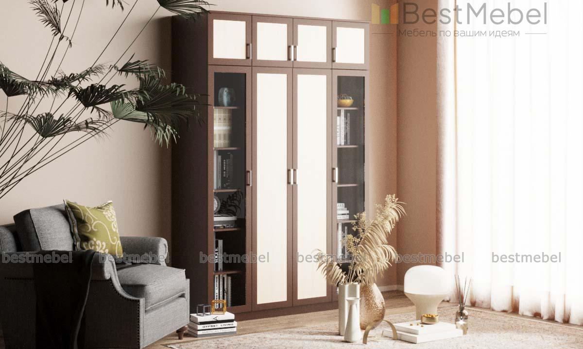 Шкаф распашной Фауст 3 BMS отличается особенной вместительностью благодаря высоте и практичной комбинированной конструкции. Модель оборудована двухдверным платяным отделением, двумя посудными витринами и распашной антресолью для хранения сезонных вещей. Строгие рамочные фасады шкафа выполнены в контрастных древесных тонах, износостойки и долговечны. Купить шкаф распашной Фауст 3 BMS для меблировки современной гостиной вы сможете в нашем интернет-магазине по выгодной цене.