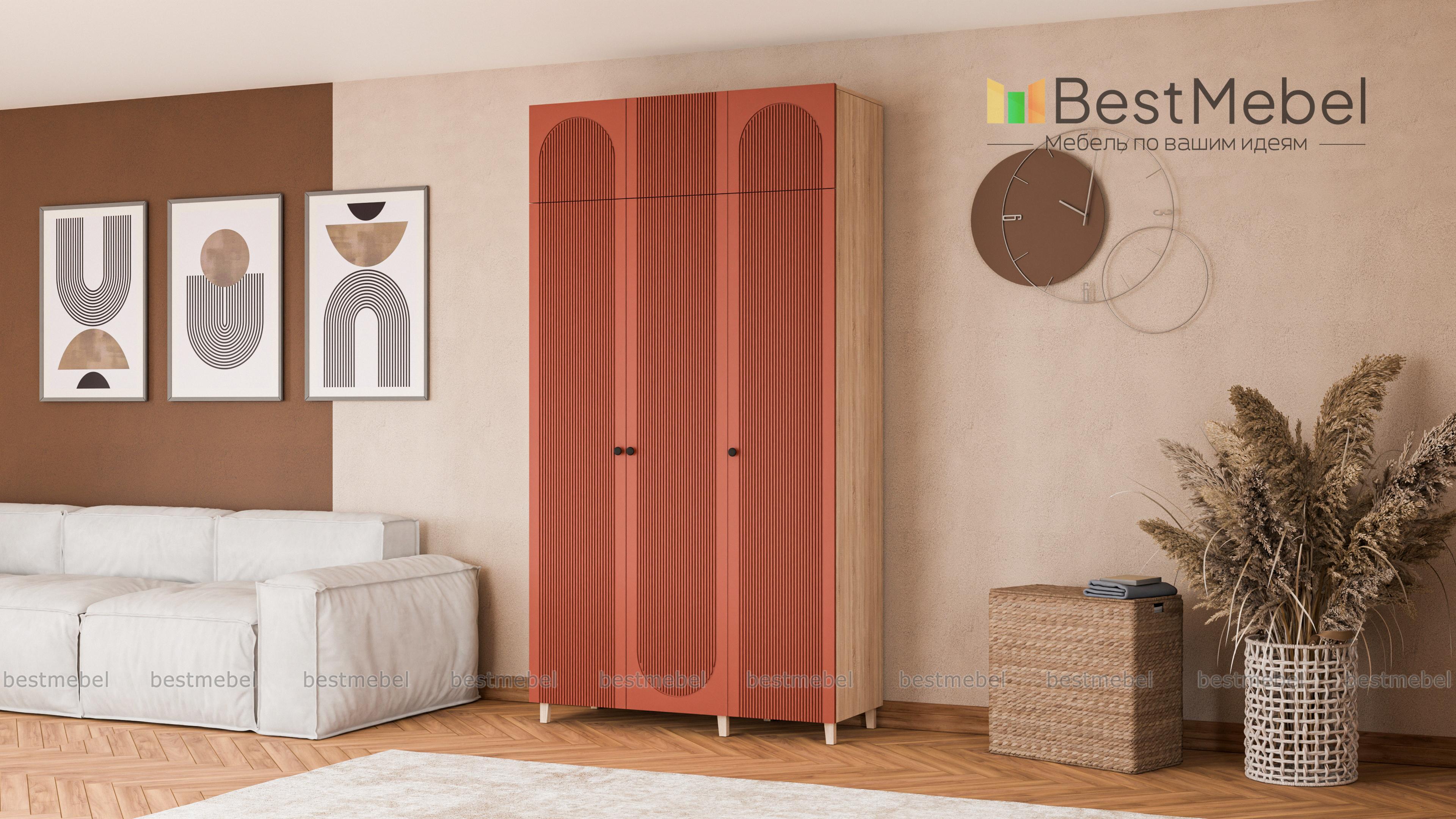Шкаф распашной Рене 23 BMS поможет разместить еще больше вещей благодаря антресоли. Закрытые тремя дверцами отделения со штангой и полками для белья дополнены распашной секцией сверху. Светлый рифленый фасад шкафа выглядит изящно и современно, а качественные материалы обеспечивают поверхностям эстетичный вид, долговечность и простоту ухода. Купить шкаф распашной Рене 23 BMS можно на сайте нашего интернет-магазина в удобном размере и любых оттенках из каталога.