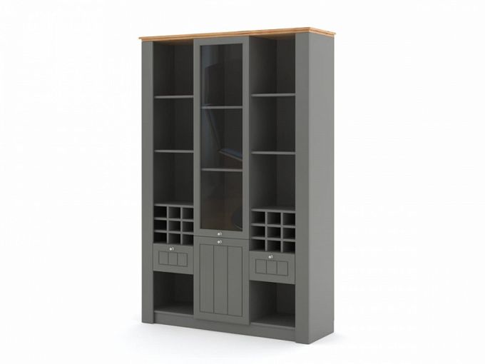 Стеллаж Арла 2 BMS дополнит интерьеры в стиле прованс продуманной системой хранения. Комбинированный стеллаж оборудован просторными открытыми полками, секциями с ячейками для бутылок, витриной, глухим распашным отделением и двумя выдвижными ящиками для мелочей. Выполненный в сочетании нейтрально-серого и теплых древесных тонов, стеллаж декорирован по фасаду характерной вертикальной фрезеровкой. Купить стеллаж Арла 2 BMS вы сможете в нашем интернет-магазине с подбором фурнитуры и цвета по каталогу.