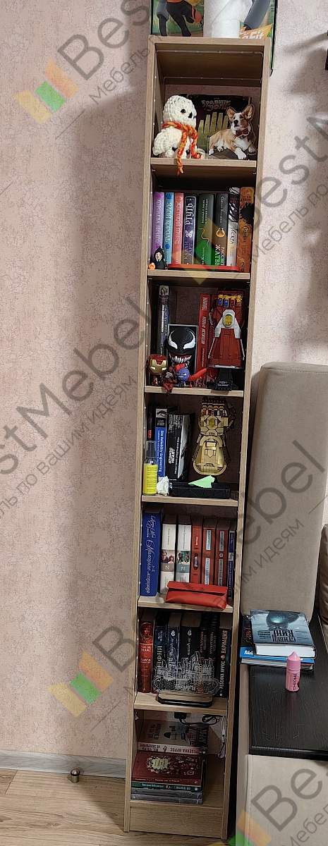 Заказ 00000267739Отличный стеллаж: крепкий, собирается элементарно. Сделали по индивидуальным параметрам, так что он идеально вписался в пространство между шкафами.