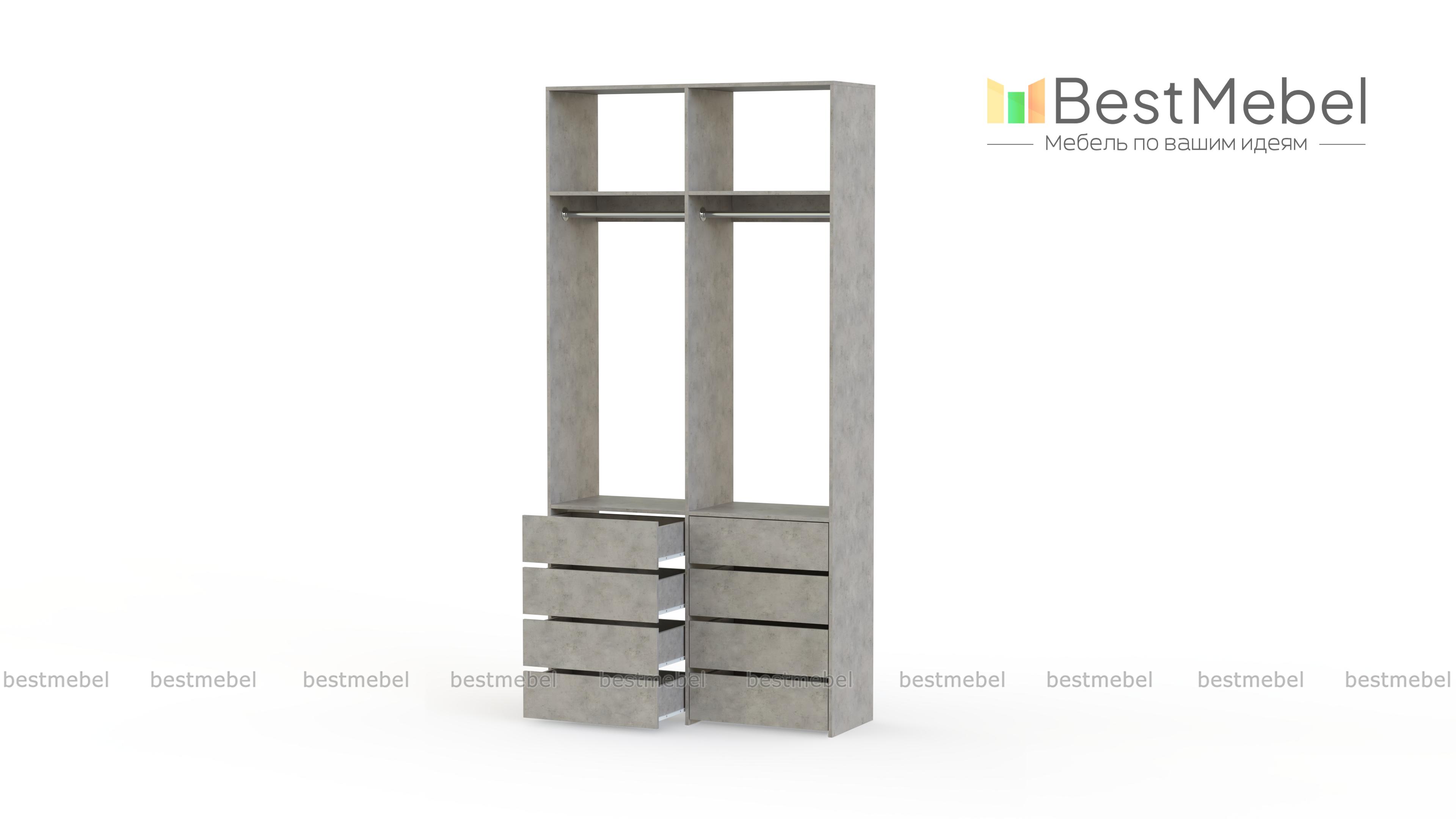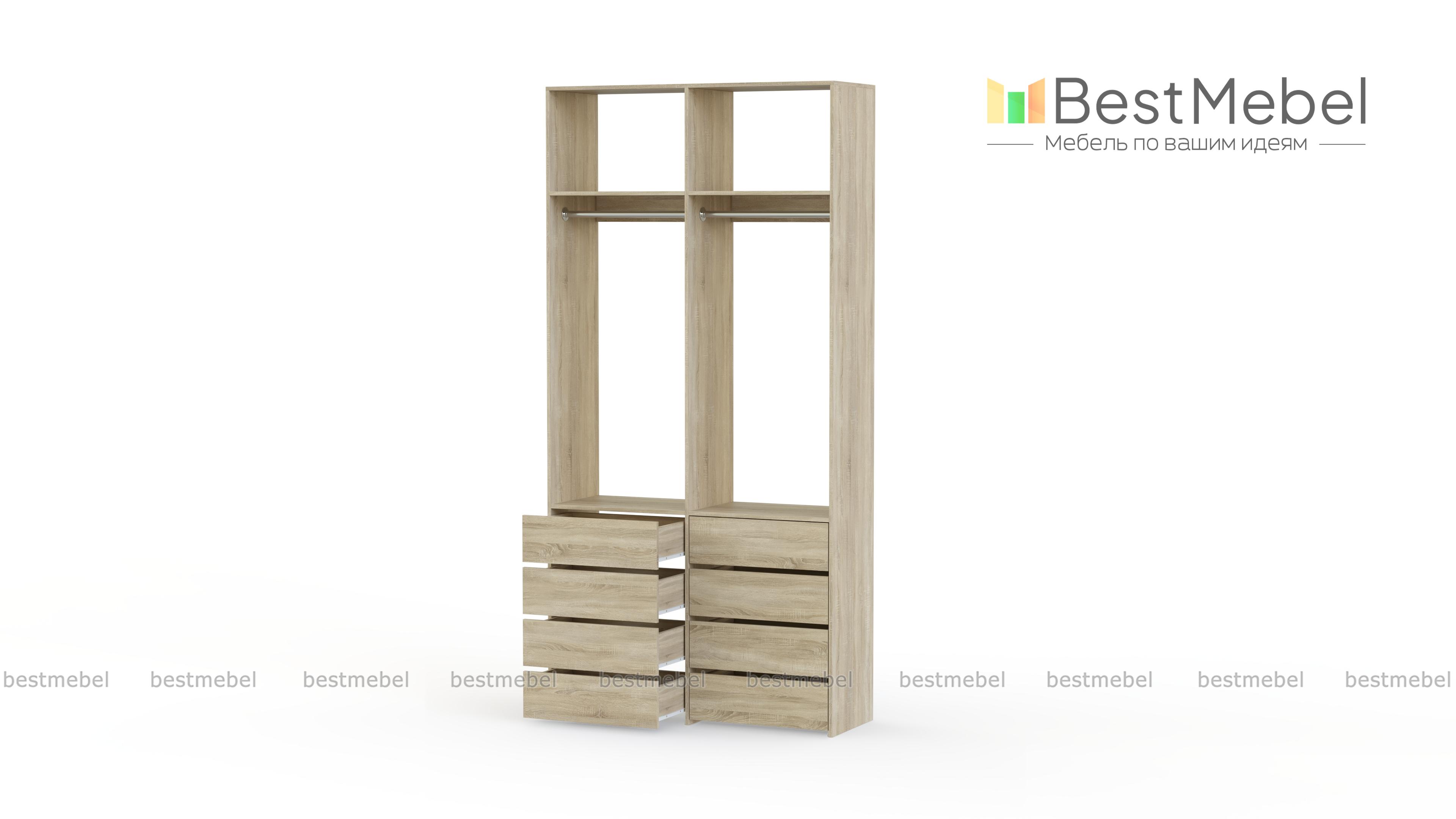 Стеллаж для одежды Мирта 44 BMS — это готовое решение в вашу гардеробную или прихожую. Продуманной системой хранения с двумя штангами, верхними полками и двумя рядами бельевых ящиков удобно пользоваться, не тратя время на поиски нужных вещей. Ламинированное покрытие эстетично выглядит, отличается прочностью и долговечностью. Купить стеллаж для одежды Мирта 44 BMS вы сможете на сайте нашего интернет-магазина с изготовлением по индивидуальным размерам.