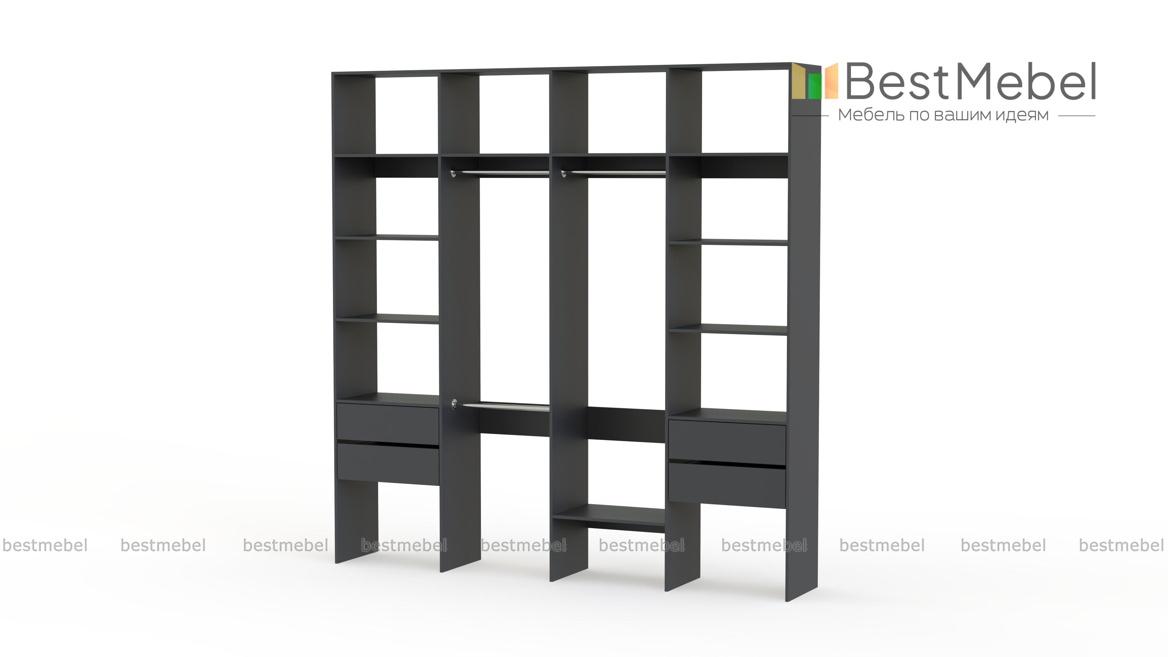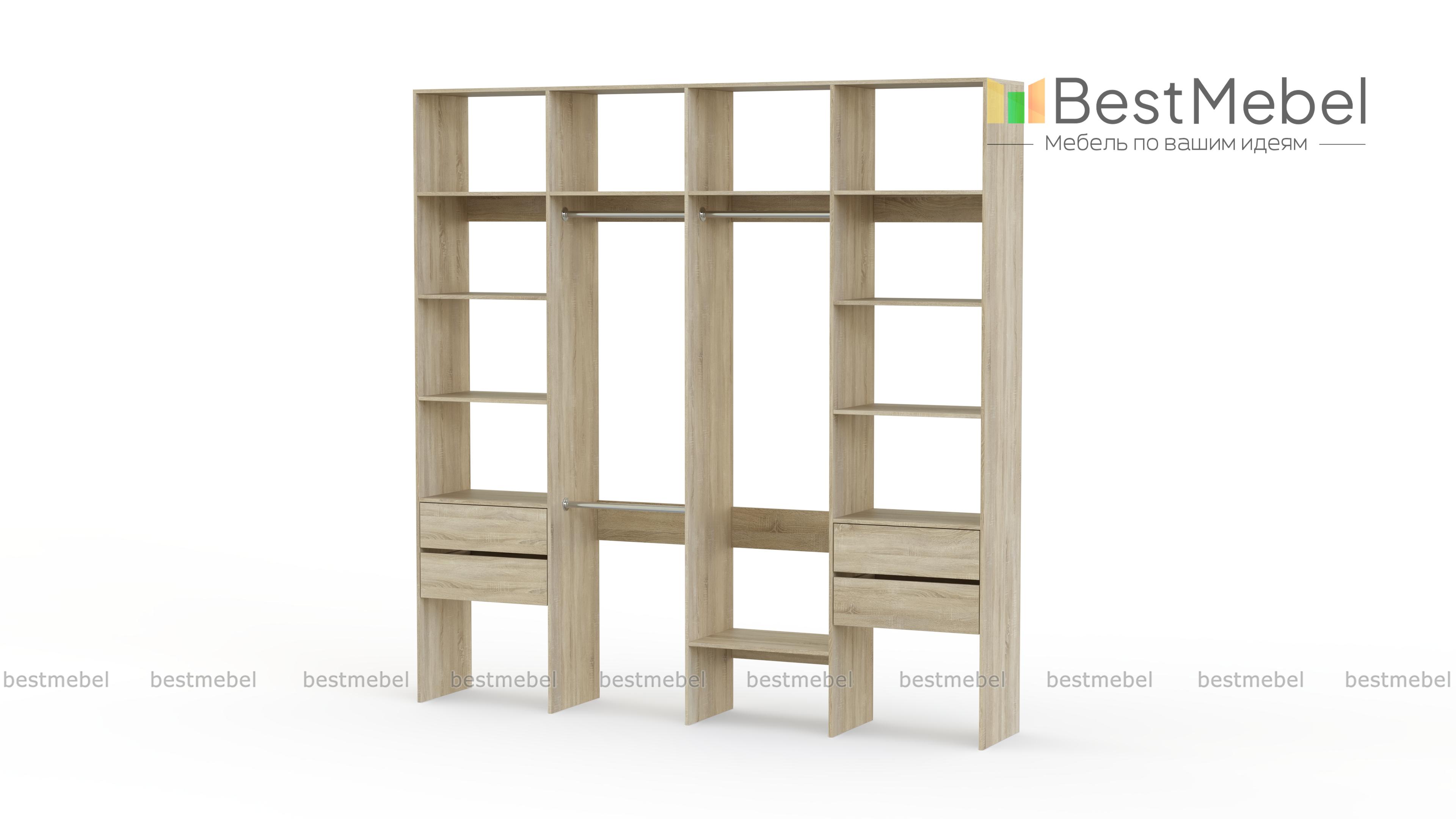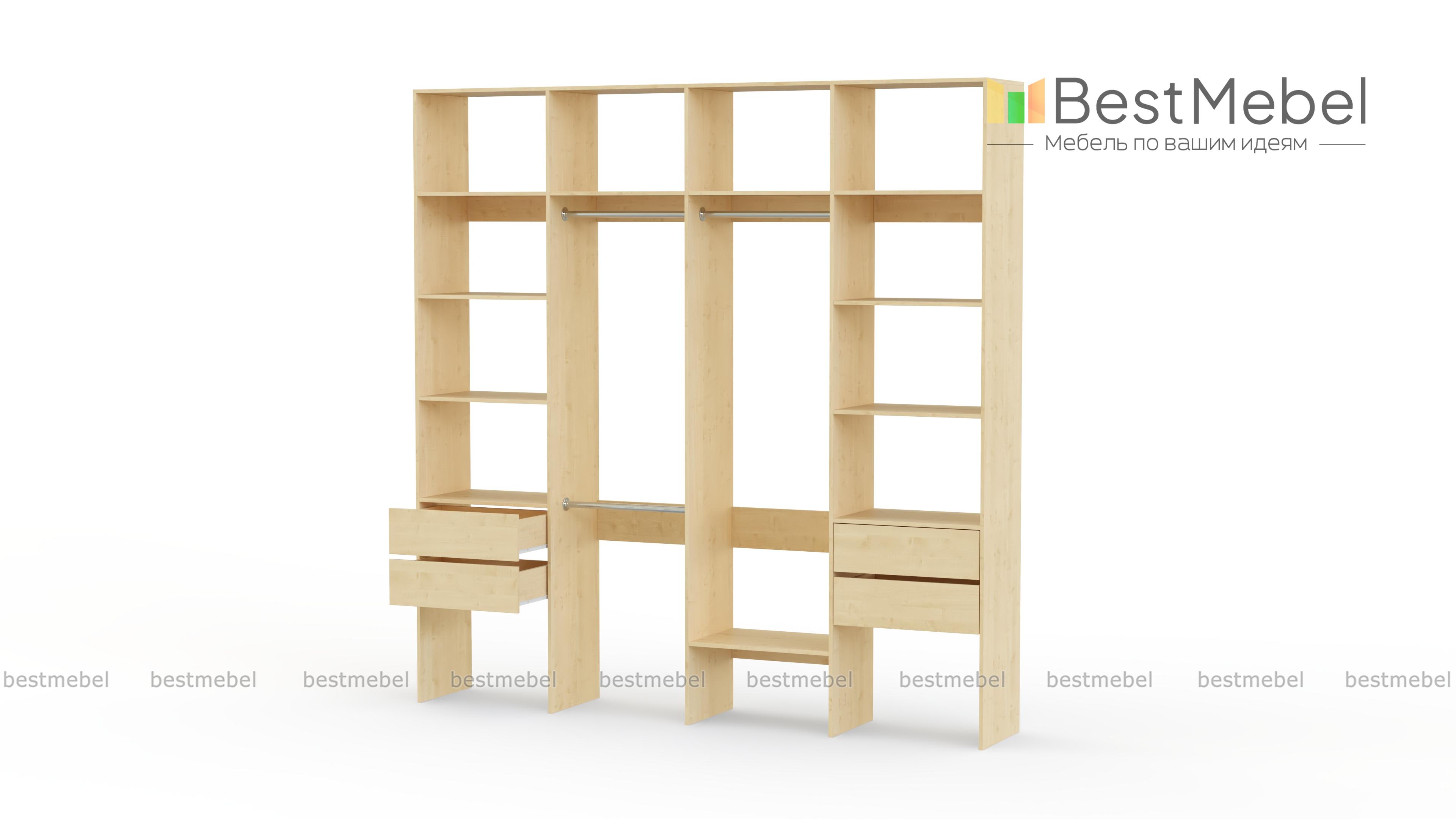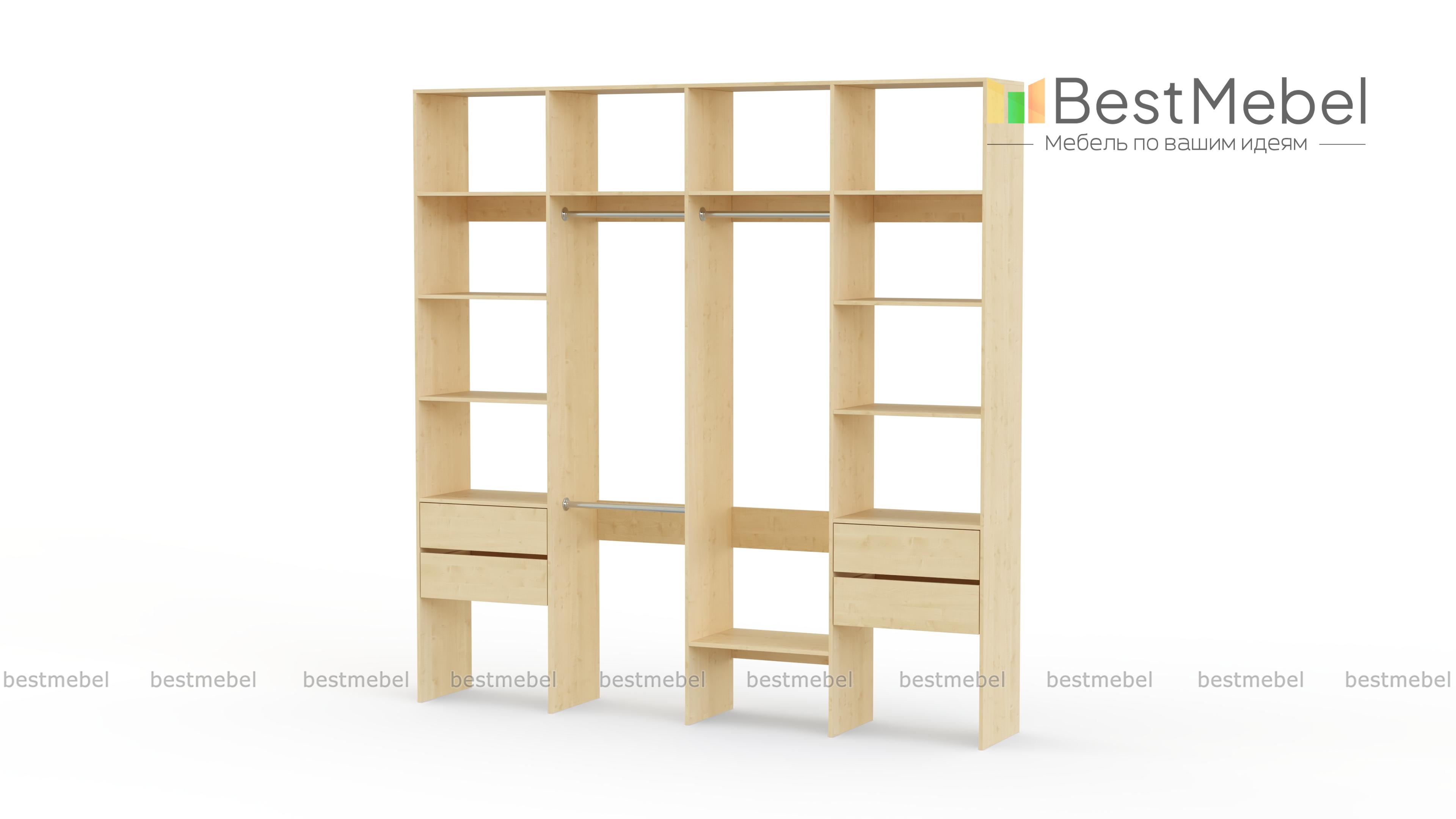 Стеллаж для одежды Мирта 66 BMS поможет вам разгрузить пространство квартиры от громоздких шкафов. Комплектация включает в себя разноуровневые штанги для одежды, вместительные полки и четыре выдвижных ящика, позволяющих хранить в порядке мелкие вещи. Благодаря использованию ламинированной плиты стеллаж доступен по цене, отличается прочностью и имеет широкую цветовую палитру. Купить стеллаж для одежды Мирта 66 BMS с изготовлением по индивидуальным размерам приглашаем в наш интернет-магазин.