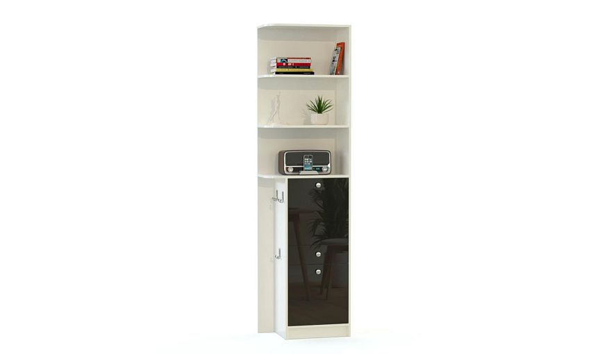 Стеллаж Группи 5 BMS может использоваться в интерьере самостоятельно или дополнит модульную композицию. Комбинированная модель оборудована открытыми полками, двумя распашными отделениями, выдвижным ящиком для хранения мелочей и торцевой вешалкой с крючками для аксессуаров. Корпус в светлых белых тонах эффектно сочетается с ярким глянцем фасада, углы полок безопасно скруглены. Купить стеллаж Группи 5 BMS приглашаем на сайт нашего интернет-магазина.