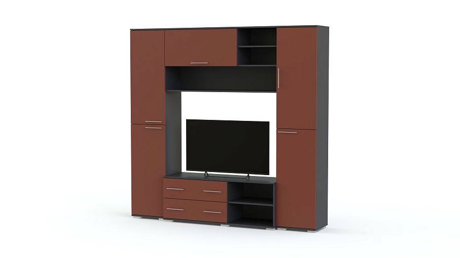 Глянцевая гостиная 19 BMS – это современный дизайн и отличная вместительность благодаря наличию разноплановых отделений. Стильная минималистичная композиция поможет сделать зону отдыха комфортной, а интерьер – актуальным. Модель в контрастном сочетании темных графитовых тонов и цветного фасада оборудована тумбой под ТВ с ящиками и нишами, двумя распашными колонками и просторной антресольной секцией с откидной дверцей и открытыми полками для книг и декоративных предметов. Купить Глянцевую гостиную 19 BMS, подобрав все необходимые параметры, приглашаем недорого в наш интернет-магазин.