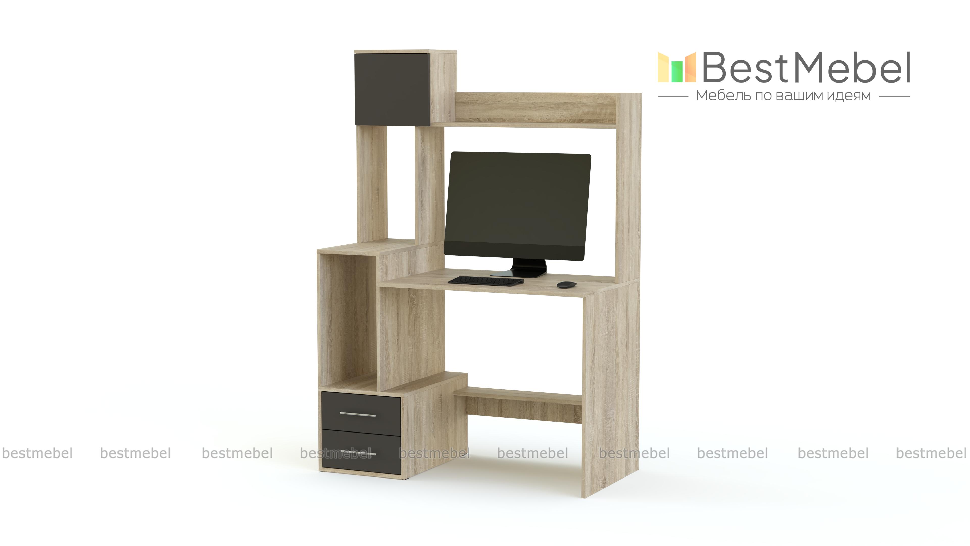 Компьютерный стол МБ 13.1 BMS – это креативный дизайн, визуальная легкость и высокая функциональность. Компактные размеры, эффектная асимметричность и яркие глянцевые фасады станут отличным решением для современной молодежной комнаты или офиса. Стол оборудован открытыми полками, выдвижными ящиками и глухим отделением, что позволит легко разместить все необходимое для работы или учебы. Купить компьютерный стол МБ 13.1 BMS вы сможете по демократичной цене в нашем интернет-магазине.
