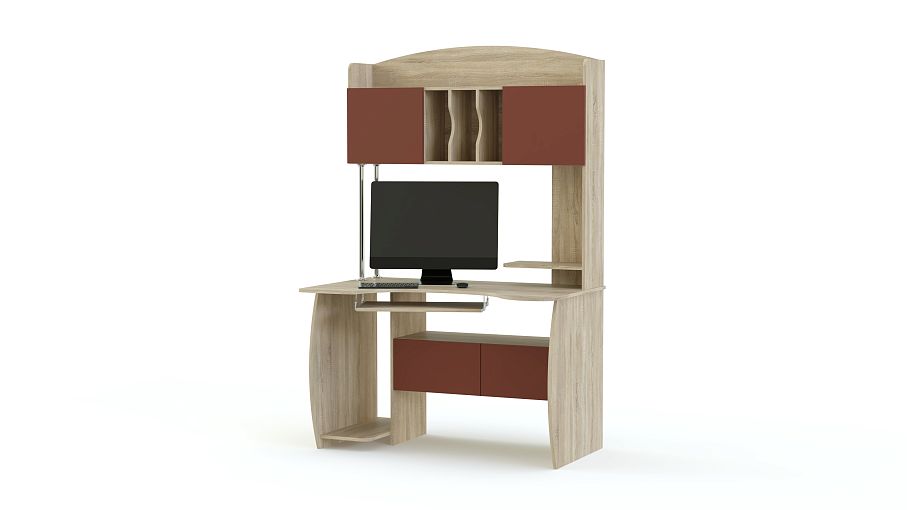 Компьютерный стол МБ 30.1 BMS – крупногабаритная модель, которая порадует владельца эргономичностью, ярким дизайном и высокой функциональностью. Стол оборудован удобной столешницей с изогнутым передним краем, выдвижной полкой для клавиатуры, нишей под системный блок, выдвижными ящиками и комбинированной надстройкой. Все углы модели безопасно скруглены, а цветные матовые фасады станут отличным решением для современных интерьеров. Купить компьютерный стол МБ 30.1 BMS вы сможете в нашем интернет-магазине по лучшей цене.