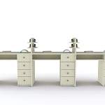 Стол для маникюра Кемел BMS предназначен для меблировки профессиональных салонов, позволяя работать одновременно сразу трем мастерам. Линейная модель имеет просторную рабочую поверхность, разделенную надстройками с полочками под лаки. Каждое рабочее место оборудовано индивидуальной открытой полкой для размещения оборудования и тумбой с четырьмя выдвижными ящиками для хранения материалов и инструментов. Купить стол для маникюра Кемел BMS и эффективно использовать пространство вам поможет наш интернет-магазин.
