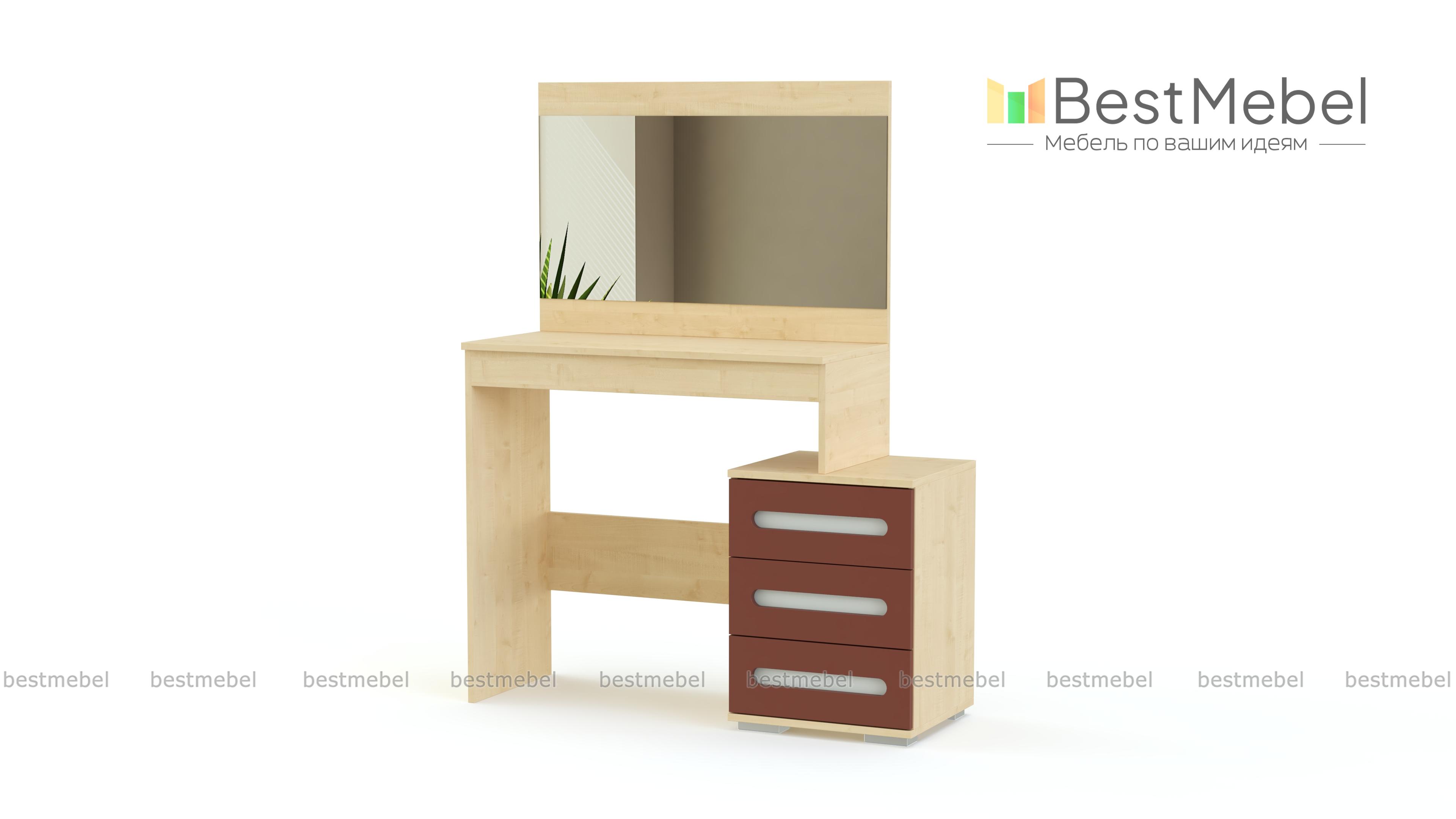 Туалетный столик Аризона BMS эффектно дополнит интерьер в современном стиле. Столик изготовлен в универсальном светлом оттенке, который великолепно сочетается с черной вставкой на фасадах выдвижных ящиков. Широкое зеркало станет незаменимым помощником в нанесении макияжа и уходе за волосами, а три вместительных ящика и широкая столешница без труда разместят декоративную косметику, аксессуары и приятные мелочи. Купить недорого с возможностью изменения размера и фурнитуры туалетный столик Аризона BMS приглашаем на наш сайт.