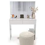 Стильный столик, белоснежные глянцевые поверхности которого подчеркивают элегантную простоту дизайна. При удлиненной столешнице он имеет небольшую стандартную ширину и при размещении вдоль стены не займет много места. Наличие двух просторных выдвижных ящиков позволит содержать в порядке косметические средства и аксессуары, а причесываться и делать макияж перед большим навесным зеркалом будет настоящим удовольствием.