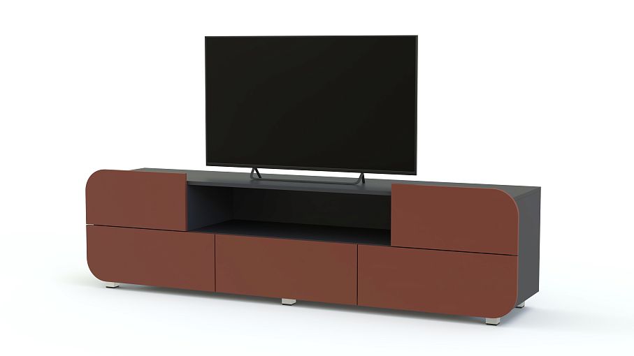 Тумба под ТВ Модерно 9.1 BMS – вместительная удлиненная модель в современном стиле. Плавные линии матовых фасадов станут эффектным дополнением интерьера в стиле минимализм или хай-тэк. Продуманная конструкция включает все необходимое для удобного размещения техники, книг и мелочей – просторную столешницу, глубокую нишу и пять выдвижных ящиков без ручек. Купить тумбу под ТВ Модерно 9.1 BMS, подобрав оптимальное цветовое сочетание, вы сможете в нашем интернет-магазине.