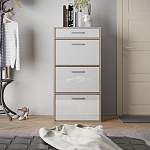Тумба для обуви Вайт 8 BMS станет элегантным дополнением современной прихожей и обеспечит экономию пространства. Компактная и вместительная благодаря высоте модель оборудована тремя откидными отделениями под обувь и выдвижным ящичком для уходовых средств и прочих мелочей в верхней части. Практичный корпус в светлых тонах дополнен эффектным фасадом в сером глянце, который визуально делает помещение просторнее и светлее. Купить тумбу для обуви Вайт 8 BMS вы сможете в нашем интернет-магазине.