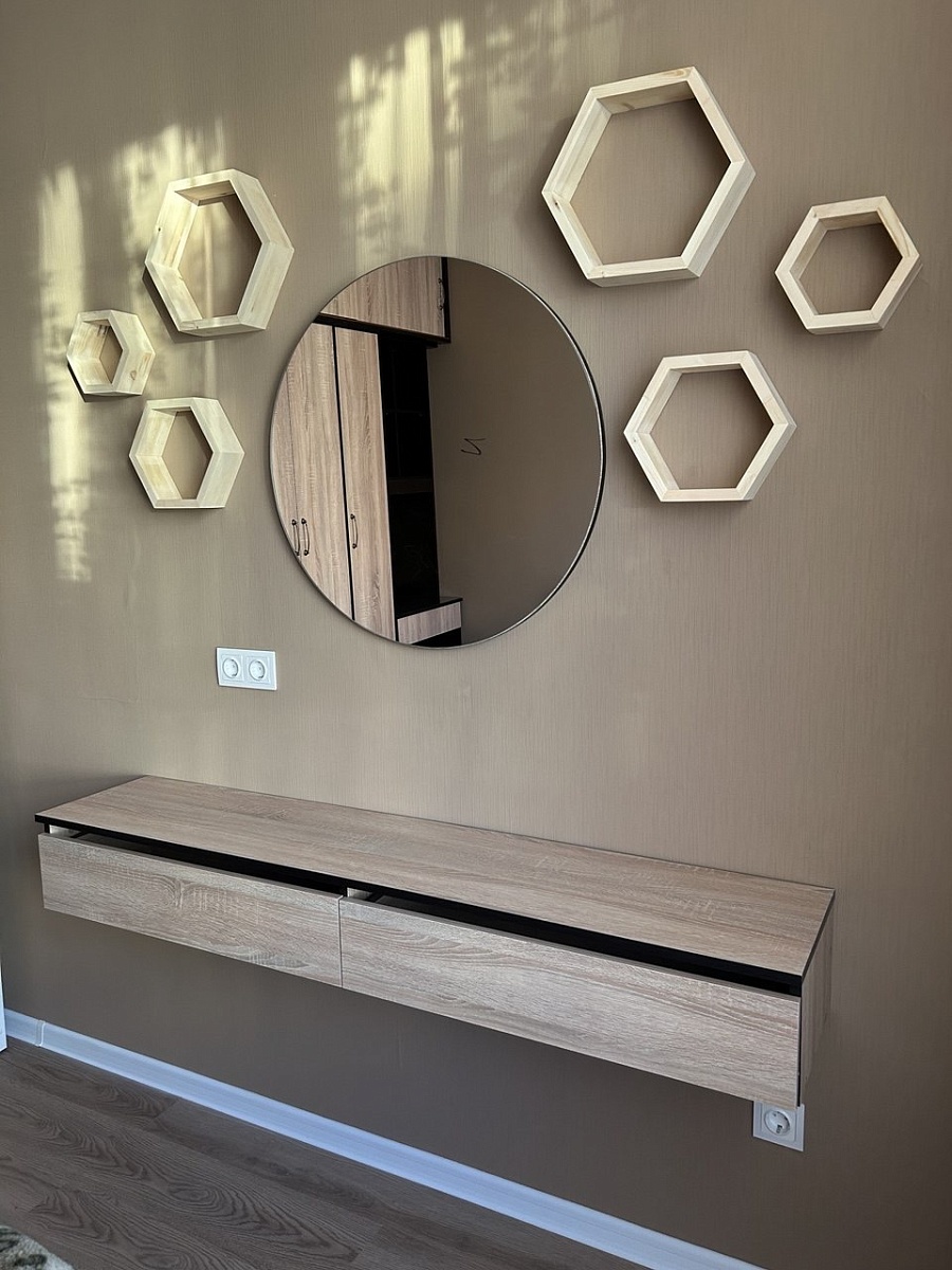 Покупал подвесную тумбу в спальню.Сконфигурировал по своему усмотрению, выбрал размер, это очень удобно. Тумба пришла в срок, доставка была до квартиры. Все аккуратно упаковано, упаковка не нарушена, никаких повреждений нет. Собирал сам, все необходимое для сборки было в комплекте, инструкция понятная, никаких сложностей при сборке не возникло. Тумба получилась ровная, без перекосов, фурнитура работает без нареканий. В общем покупкой доволен.Заказ 00000941139