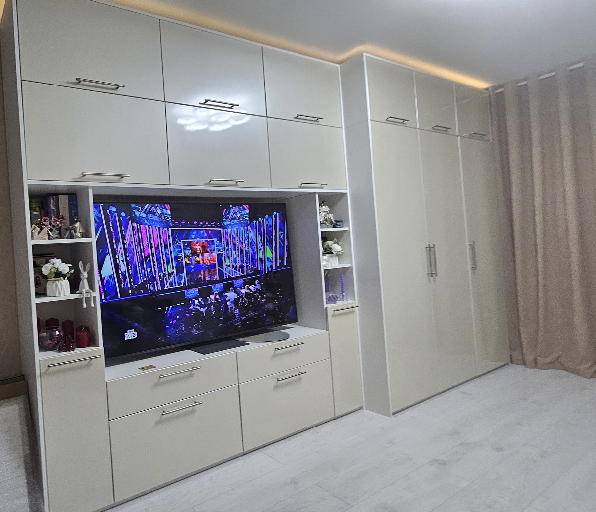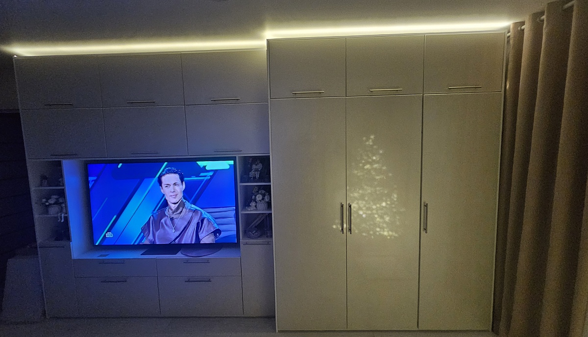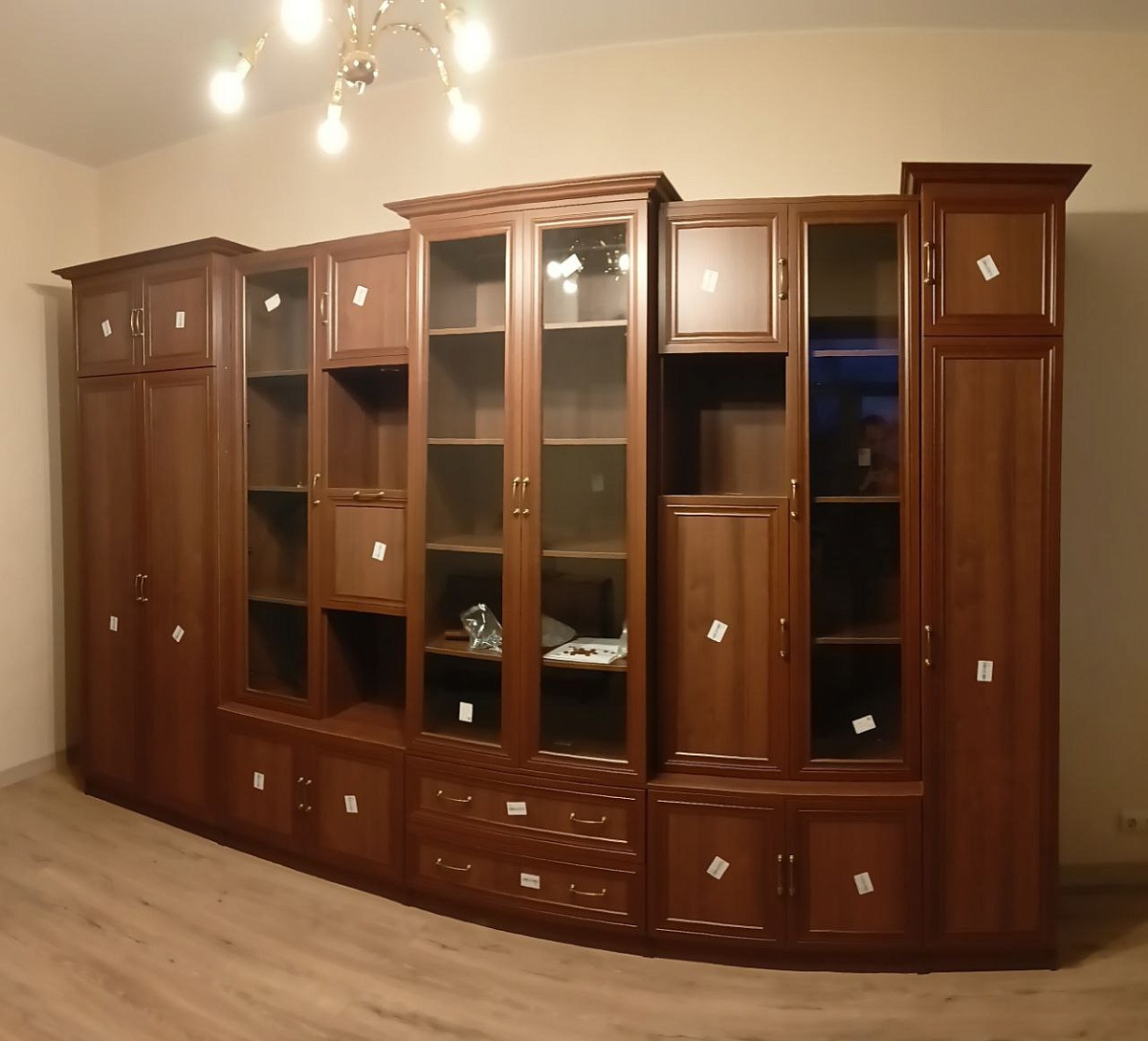 Долго выбирали стенку, чтобы было красиво и качественно, вместимо и по цене приемлемо. Остановили выбор на данной модели, цвет орех экко, по своим размерам и добавлениям - ручкам, кромке и задней стенке. Заказ приняли оперативно, привезли 1.5 недели позже, но своевременно об этом предупредили. Доставка прошла качественно, всё позиции посчитали и учли. Отдельно заказал сборку, оперативно приехало два мастера и за 4.5 часа собрали стенку качество. Стенка красивая, очень довольны!