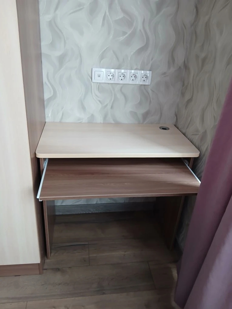Нужен был самый простой стол для ноута или моноблока, без всяких ящиков, полок и прочего. Самое главное что бы встал в промежуток между шкафом и стеной. Хорошо что БестМебель может изменять изделия в широком спектре параметров. Подогнал размер, выбрал цвет под остальную мебель, столешницу потолще, кромку толстую, заказал дополнительно выдвижную полку под клавиатуру. Получился отличный стол. Изготовили быстро, привезли вовремя. Качество хорошее. собирать не сложно.