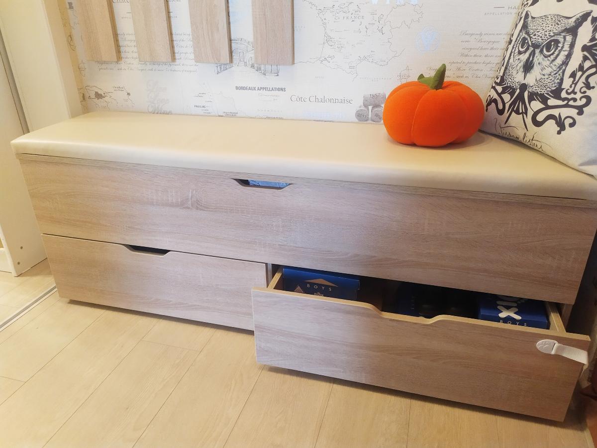 Заказ номер 00000475030. Хорошая тумба, сделанная по необходимым нам размерам. Сверху кожзам, за пол года не повредился (дома и котик и ребенок двухлетний машинки катает). Вместительные ящики и "сундук" под сиденьем. Из минусов крышка-сидушка очень тяжелая, нужно закрывать ее строго держась над выемкой, иначе руки придавливает