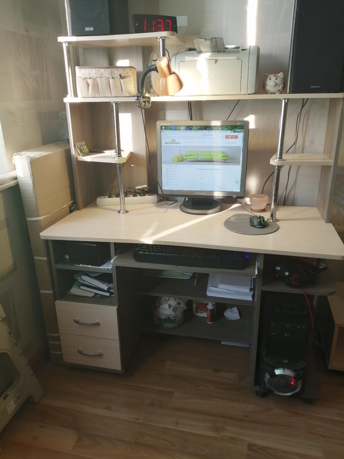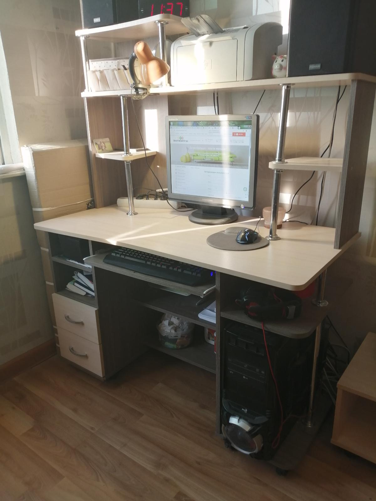 Этот компьютерный стол купили 2 года назад и довольны им до сих пор. И сейчас он выглядит как в день покупки. Товаром довольны. Заказ 171160.