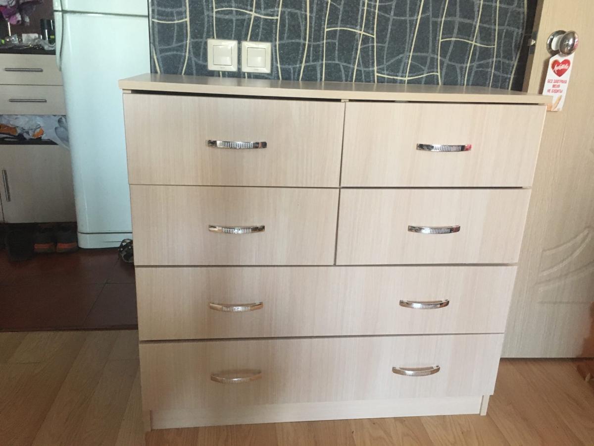 Шкаф нас удивил. Он оказался длинным и тонким (НЕ таким широким и коротким как на ваших картинках). Матового стекла в нем тоже нет. Он весь деревянный (или что там за материал). Мы думали хранить в нем папки, но они, конечно же, НЕ везли. В итоге мы приспособили его под детские вещи и, в целом, довольны. Смотрится стильно, как видите на фото (сверху лежит рамочка, не обращайте внимания). Убираться очень удобно, когда мебель висит. Благодаря вашей компании столы у нас тоже навесные и мы счастливы)