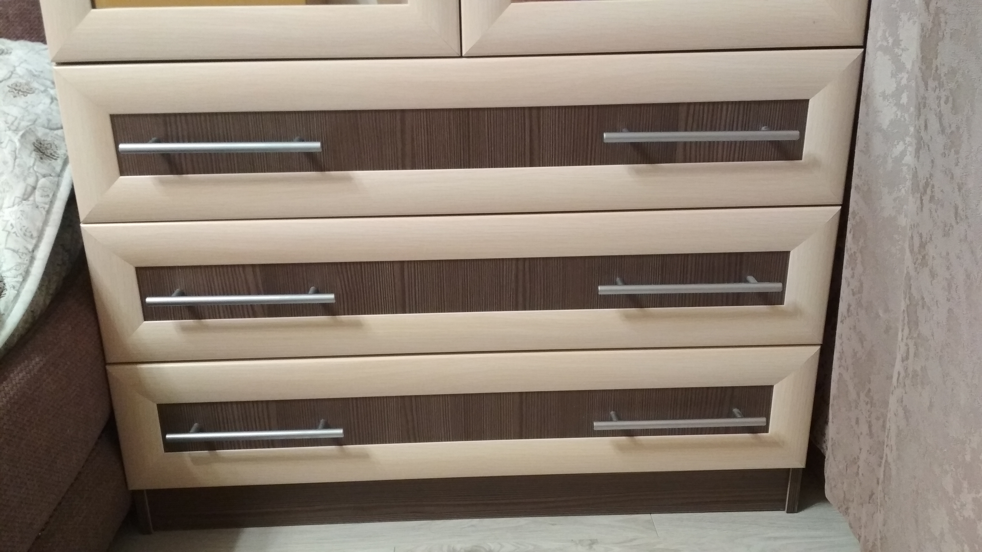 Комод покупали ребенку. Цвет бук Бавария. Ребенок доволен.  Подошел цвет к остальной мебели в спальне. Доставили как и обещали. Соотношение цена-качество отличное. Единственно, что инструкция по сборке состоит из одной картинки и списка деталей, без последовательности действий, поэтому вызывали мастера по сборке. К самому комоду претензий нет. Рекомендую!